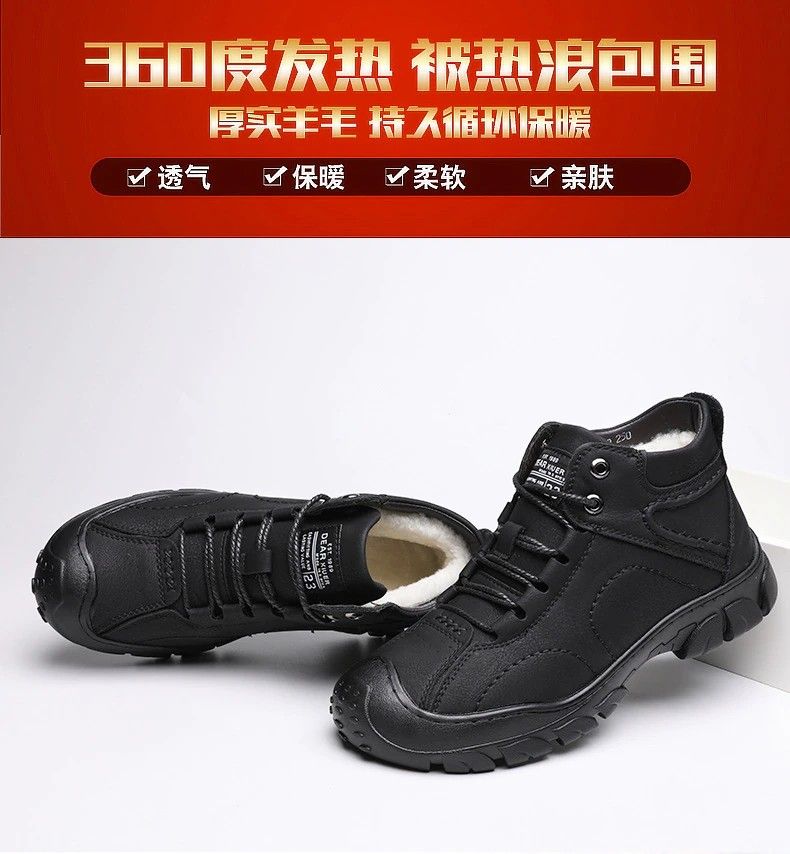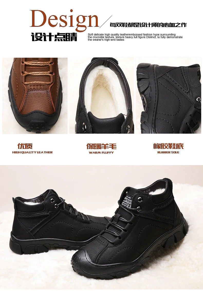 • Erkekler Kış Kar Botları Su Geçirmez Deri Sneakers Süper Sıcak Erkek Botları Açık Erkek Yürüyüş Botları Iş Ayakkabısı