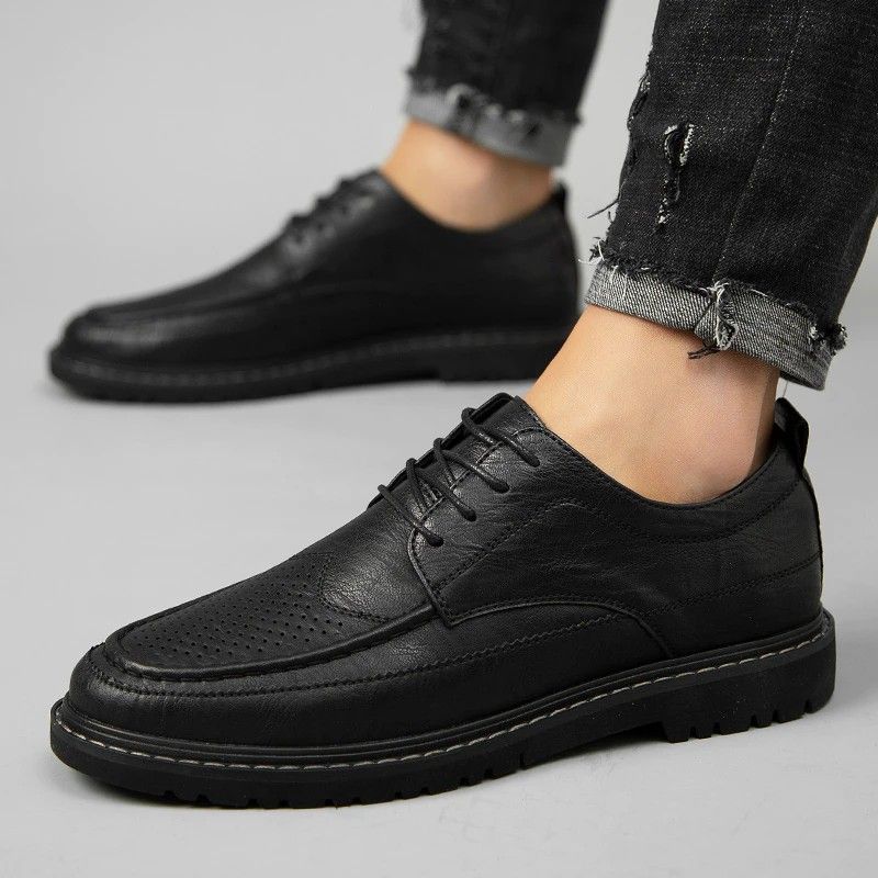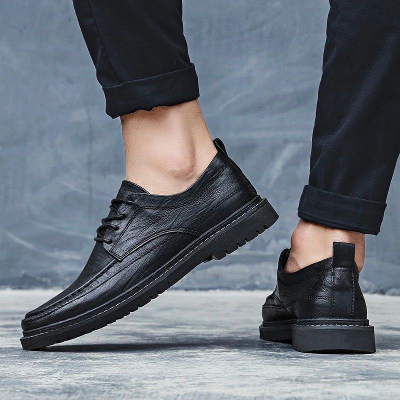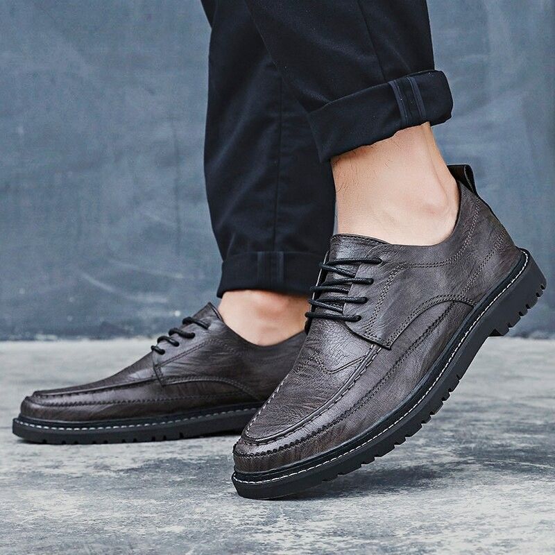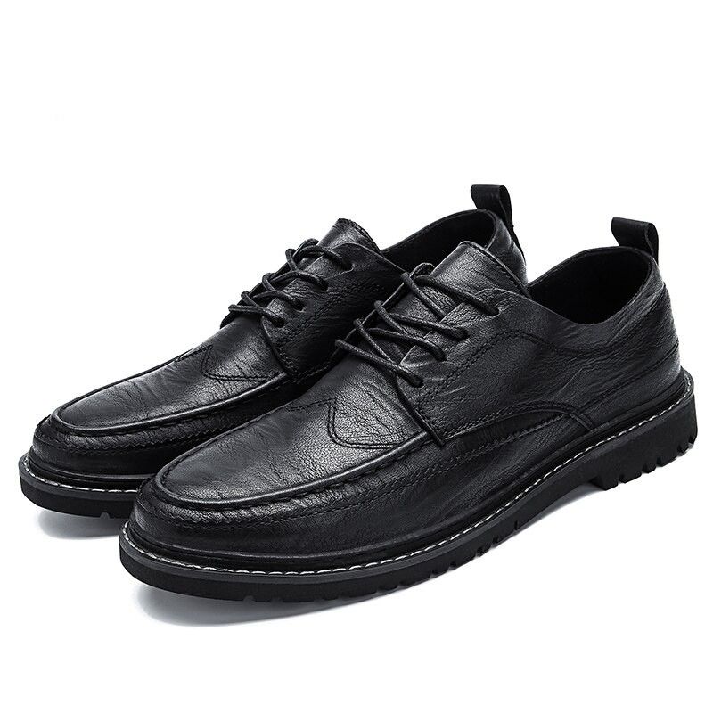 en yeni Yeni Erkek Kaliteli Deri Ayakkabı İngiliz İş Lace Up Moda Siyah Yumuşak Deri Erkek Bölünmüş Deri Elbise Ayakkabı Erkekler