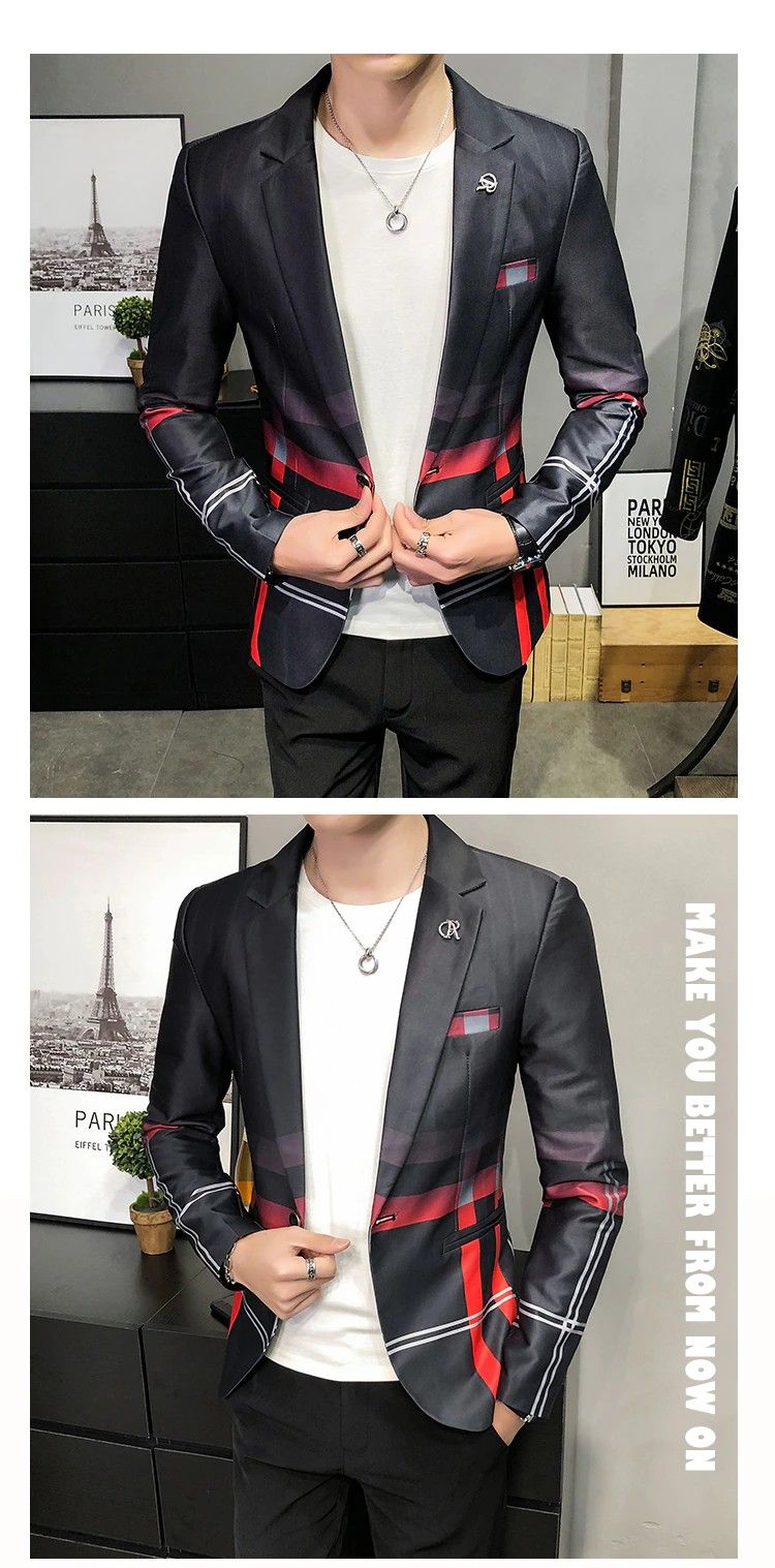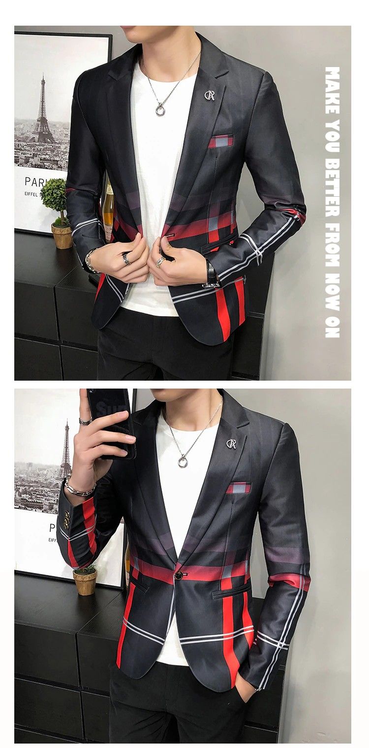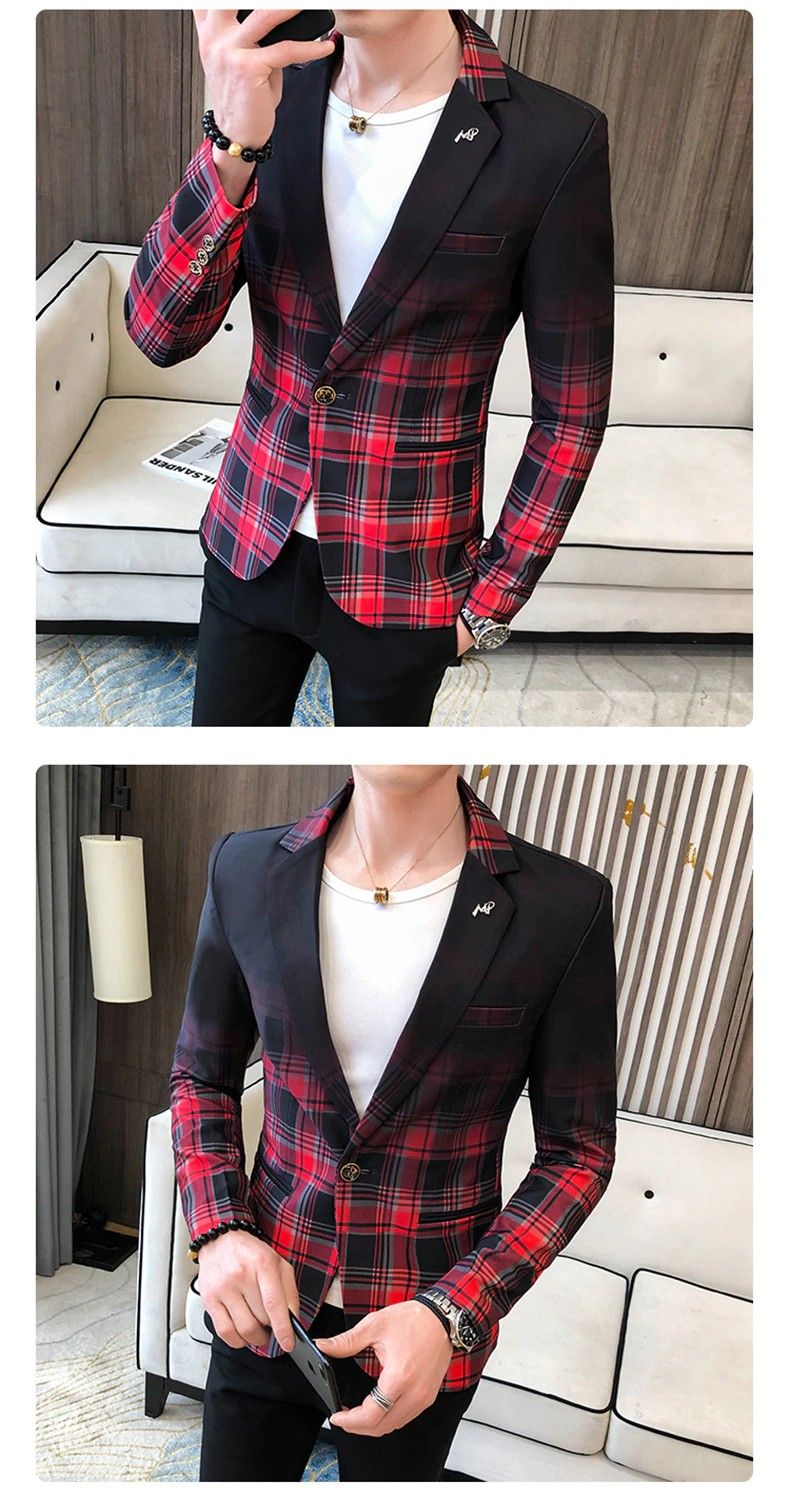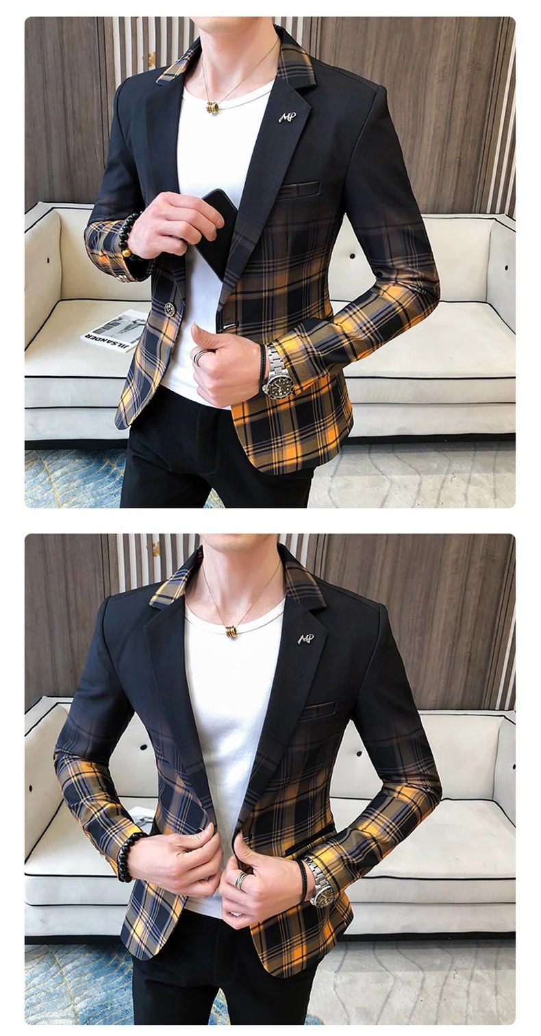en yeni Yeni Stil Premium Renk Şeması Erkekler Için Slim Fit Iş Ekose Blazers/Erkek Moda Eğlence Takım Elbise Ceket Ekose Ceketler S-3Xl