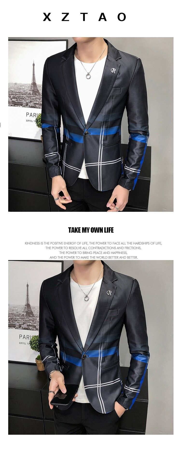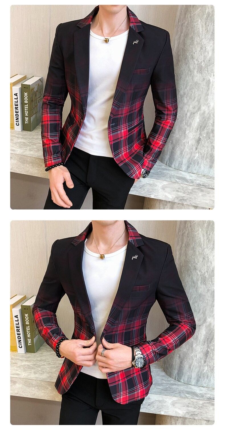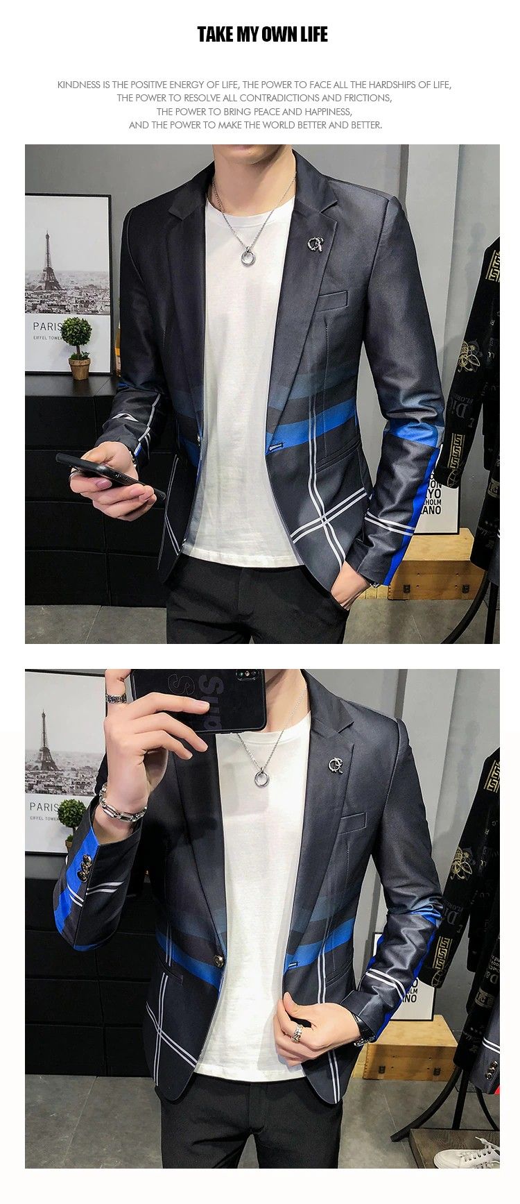 en yeni Yeni Stil Premium Renk Şeması Erkekler Için Slim Fit Iş Ekose Blazers/Erkek Moda Eğlence Takım Elbise Ceket Ekose Ceketler S-3Xl