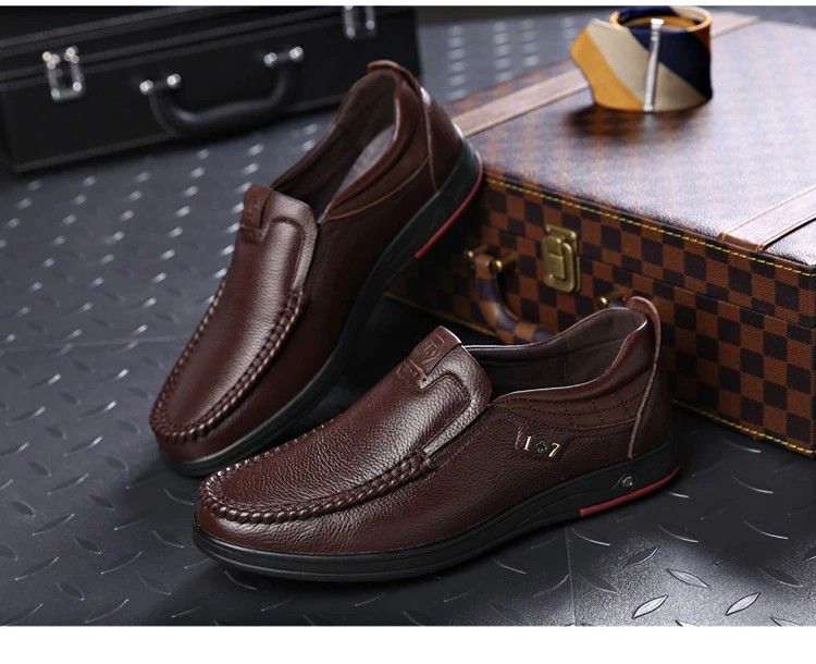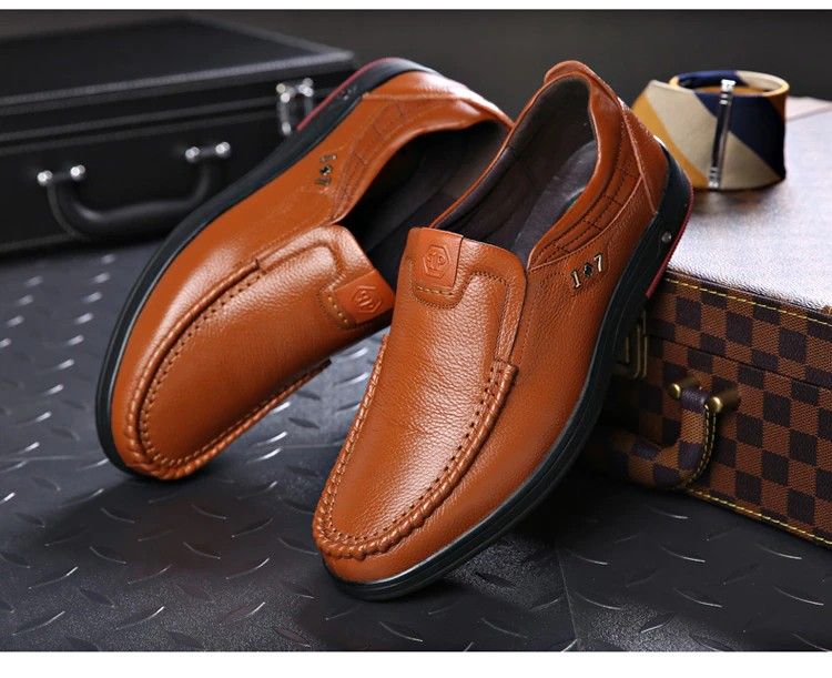 en yeni Yeni Erkek Hakiki Deri Ayakkabı Boyutu 38-47 Kafa Deri Yumuşak Kaymaz Sürüş Ayakkabısı Adam Bahar Deri Ayakkabı