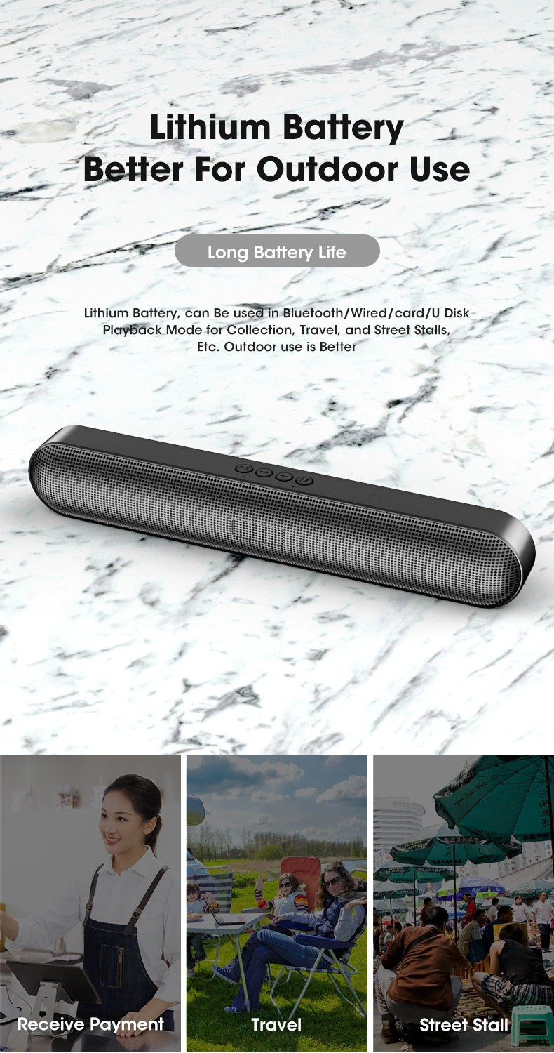 Lityum pil, bluetooth/kablolu/kart/U Disk oynatma modunda toplama, seyahat ve sokak tezgahlarında kullanılabilir. Dış mekan kullanımı daha iyidir