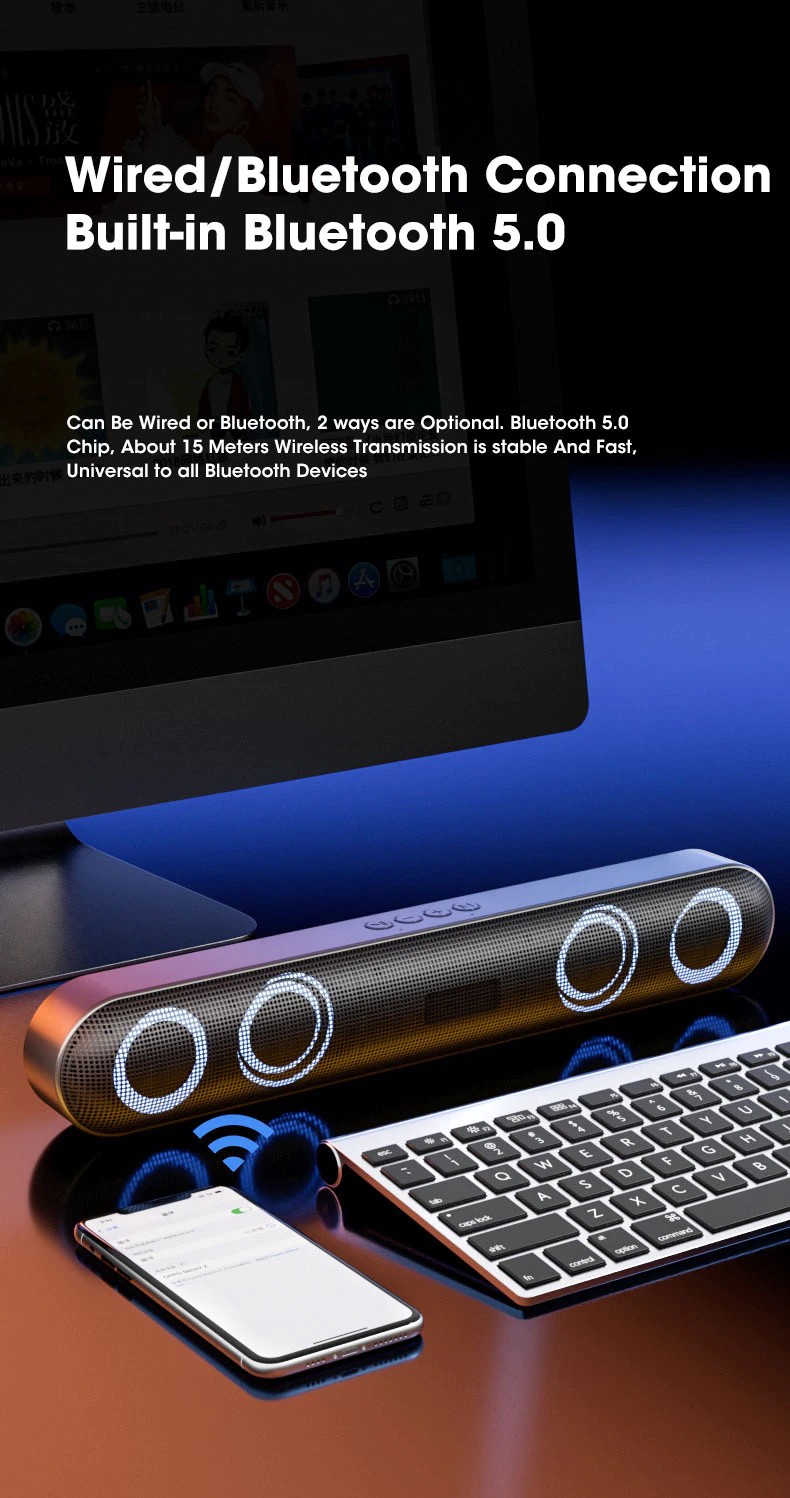 Niye 6D Surround Soundbar Bluetooth 5.0 Ev Hoparlör Kablolu Bilgisayar Hoparlörleri Stereo Subwoofer Ses Çubuğu Pc Laptop Için Sineması Tv