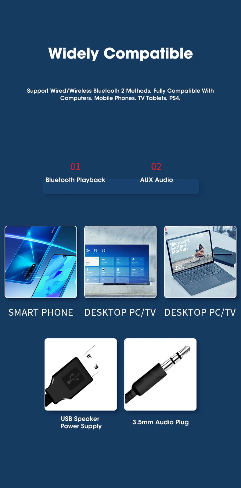 Bilgisayarlar, cep telefonları, TV tabletleri, PS4 ile dfully uyumlu kablolu/kablosuz bluetooth 2 yöntemleri destekleyin
