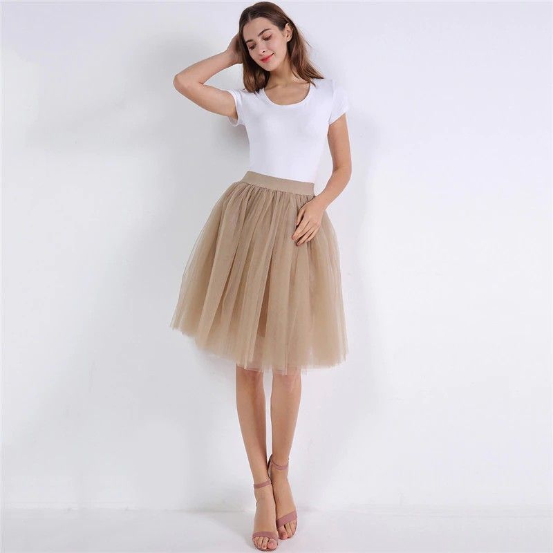 Parti Tren Kabarık 5 Katmanlı 60Cm Moda Kadınlar Tül Etek Tutu Düğün Gelin Nedime Etek Üstü Petticoat Lolita Saia