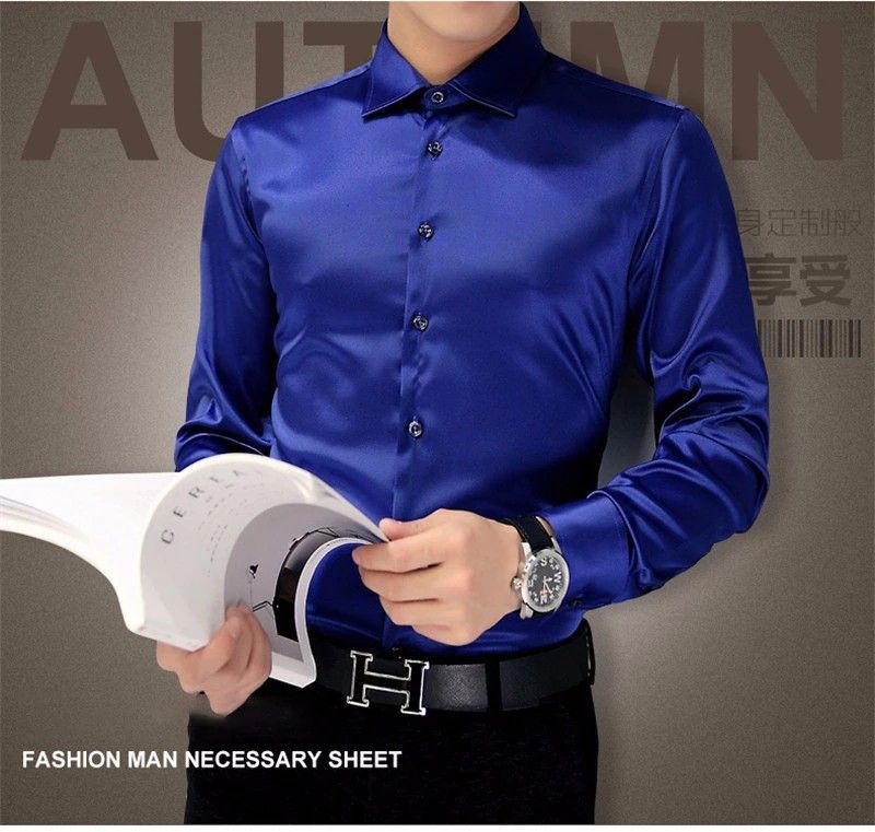 Artı Boyutu 5Xl en yeni Yeni Erkek Lüks Gömlek Düğün Elbisesi Uzun Kollu Gömlek Ipek sigara Erkekler Merserize Pamuklu Gömlek