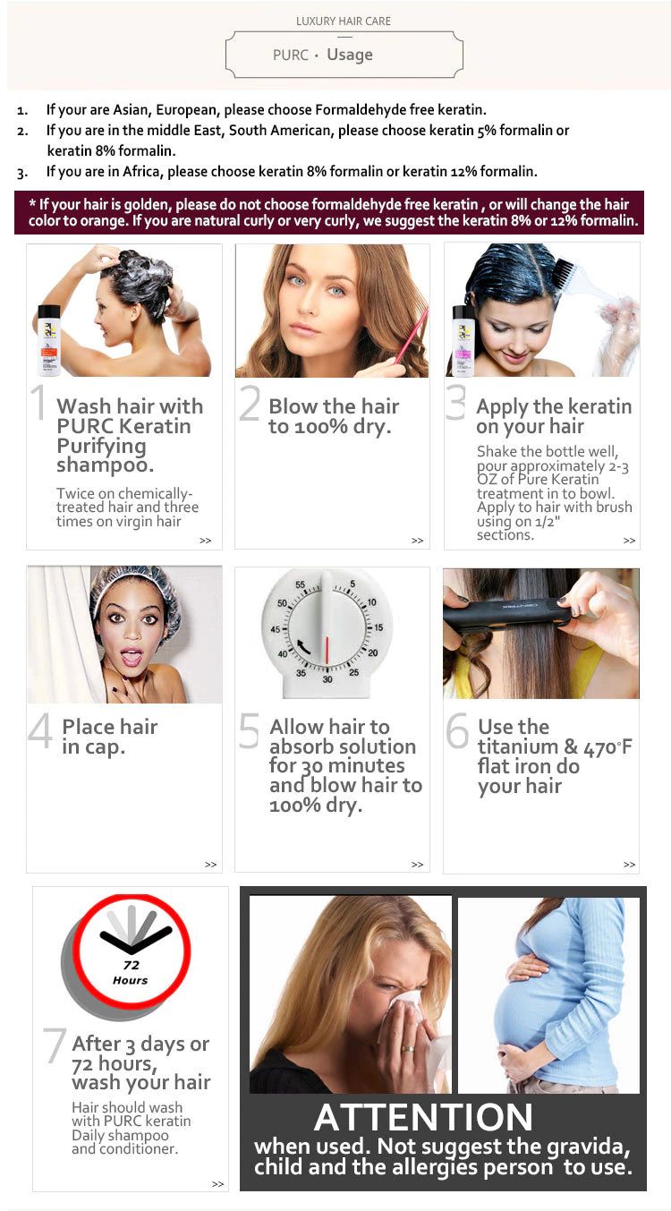 8. 3 gün veya 72 saat sonra, saç PURC keratin günlük şampuan ile yıkanmalıdır veSaç kremi.