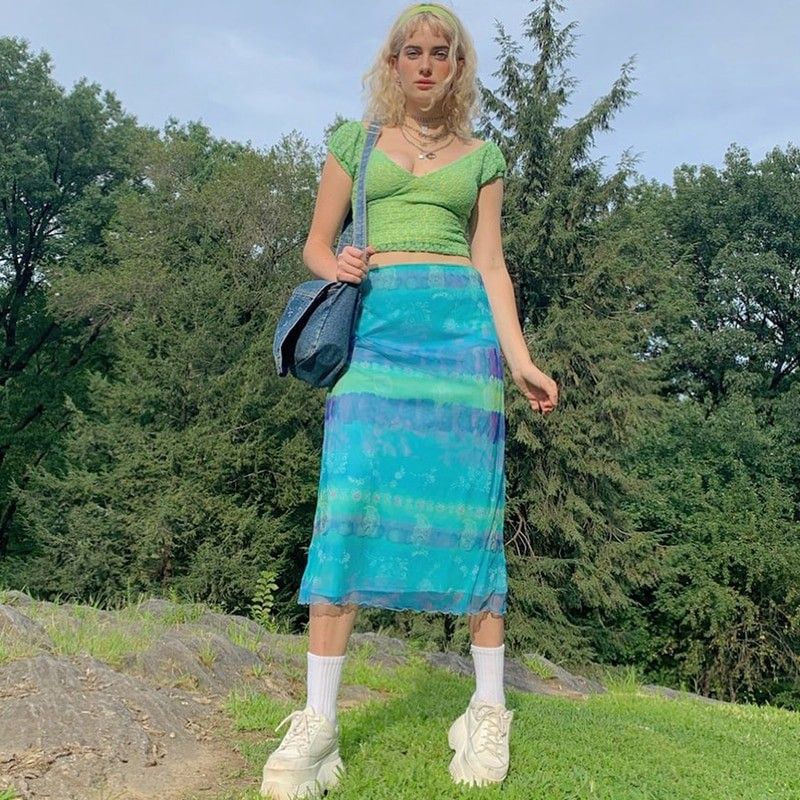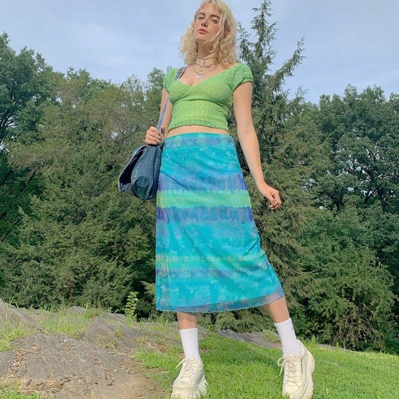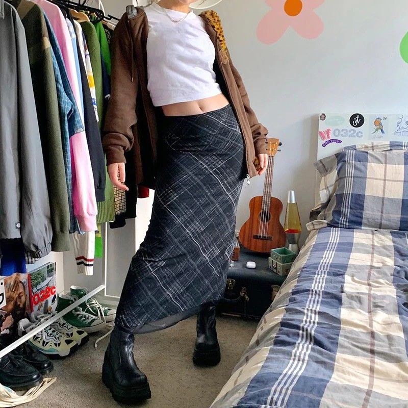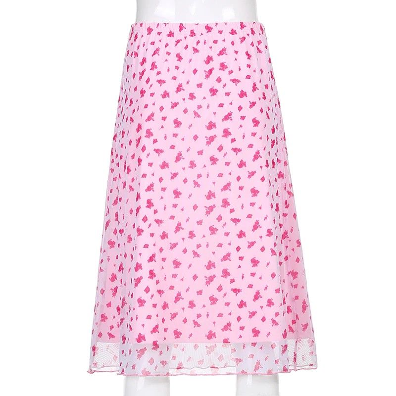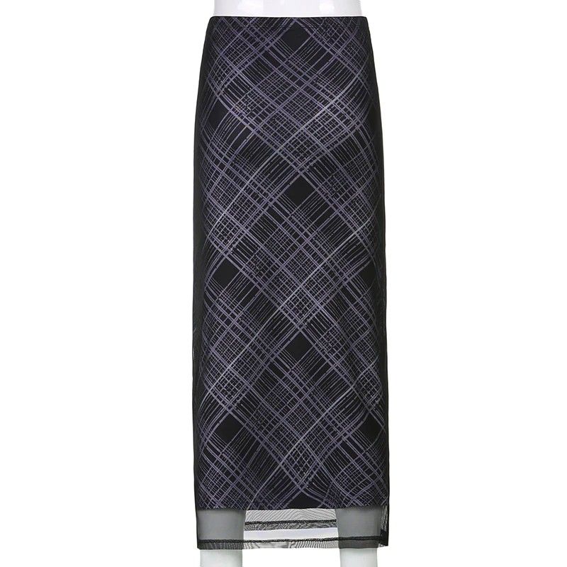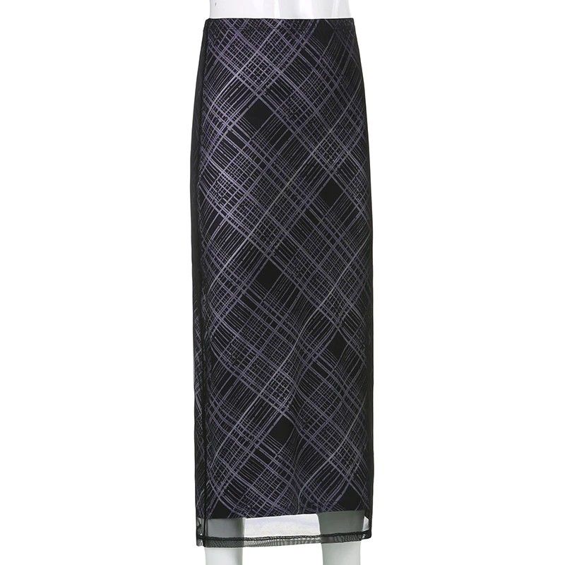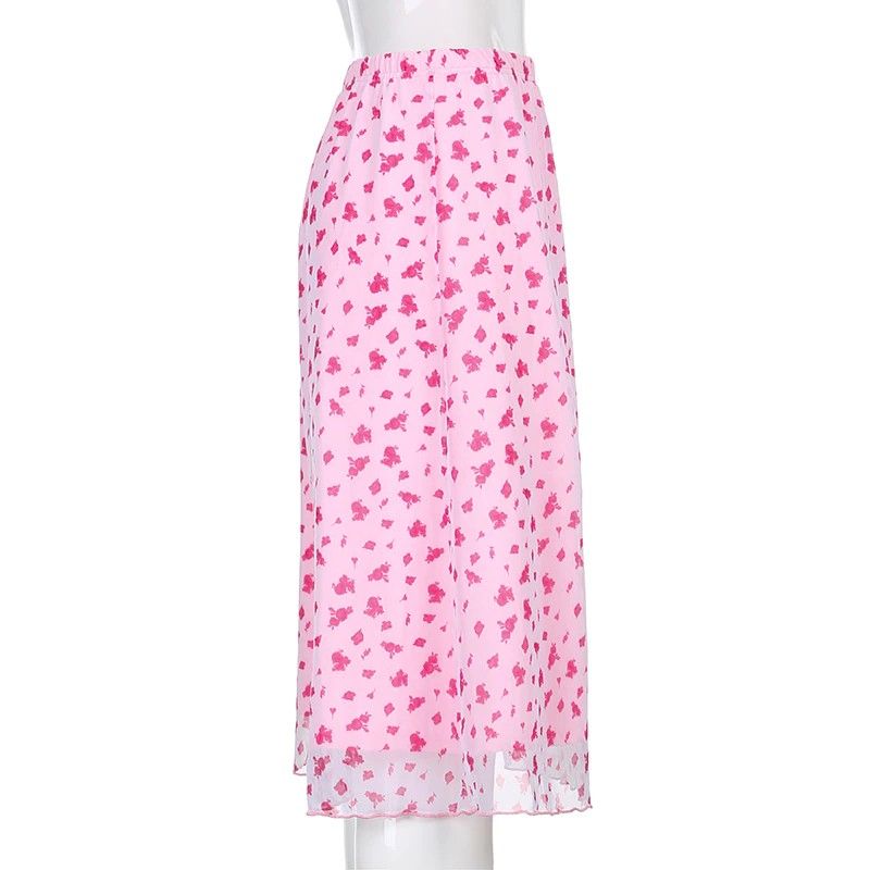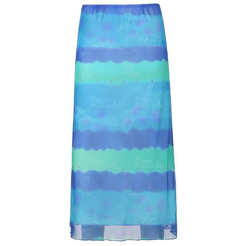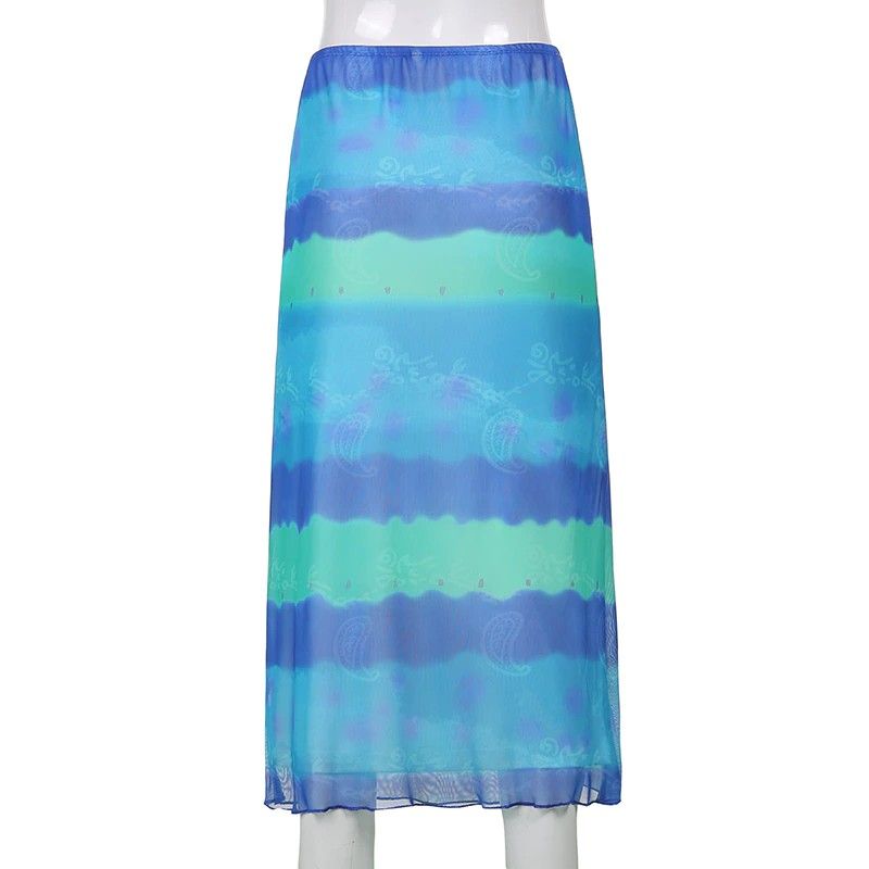 Rapcopter Çizgili Uzun Etekler Retro Y2K Düz Etekler Yüksek Belli Yaz Kadın Tatlı Sevimli Parti Etekler Grunge Moda