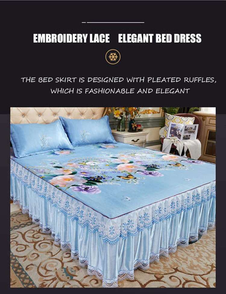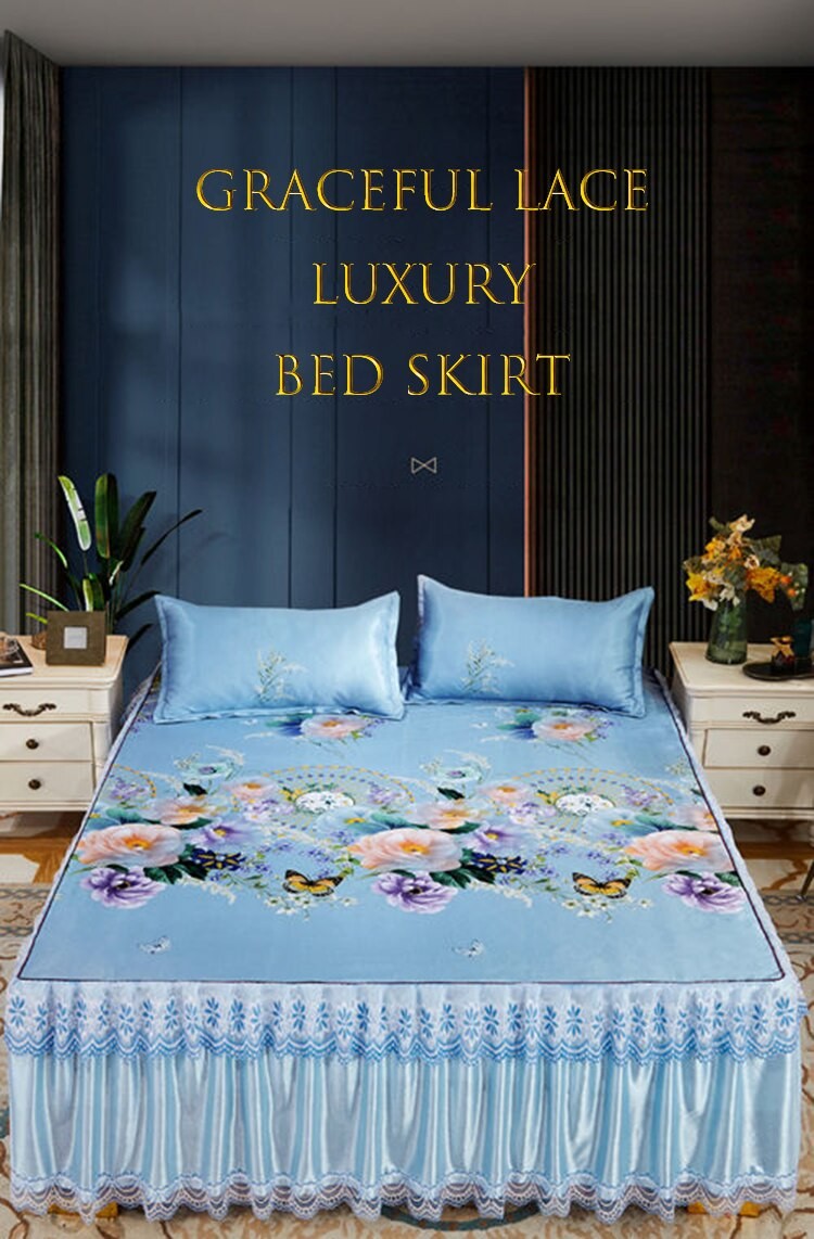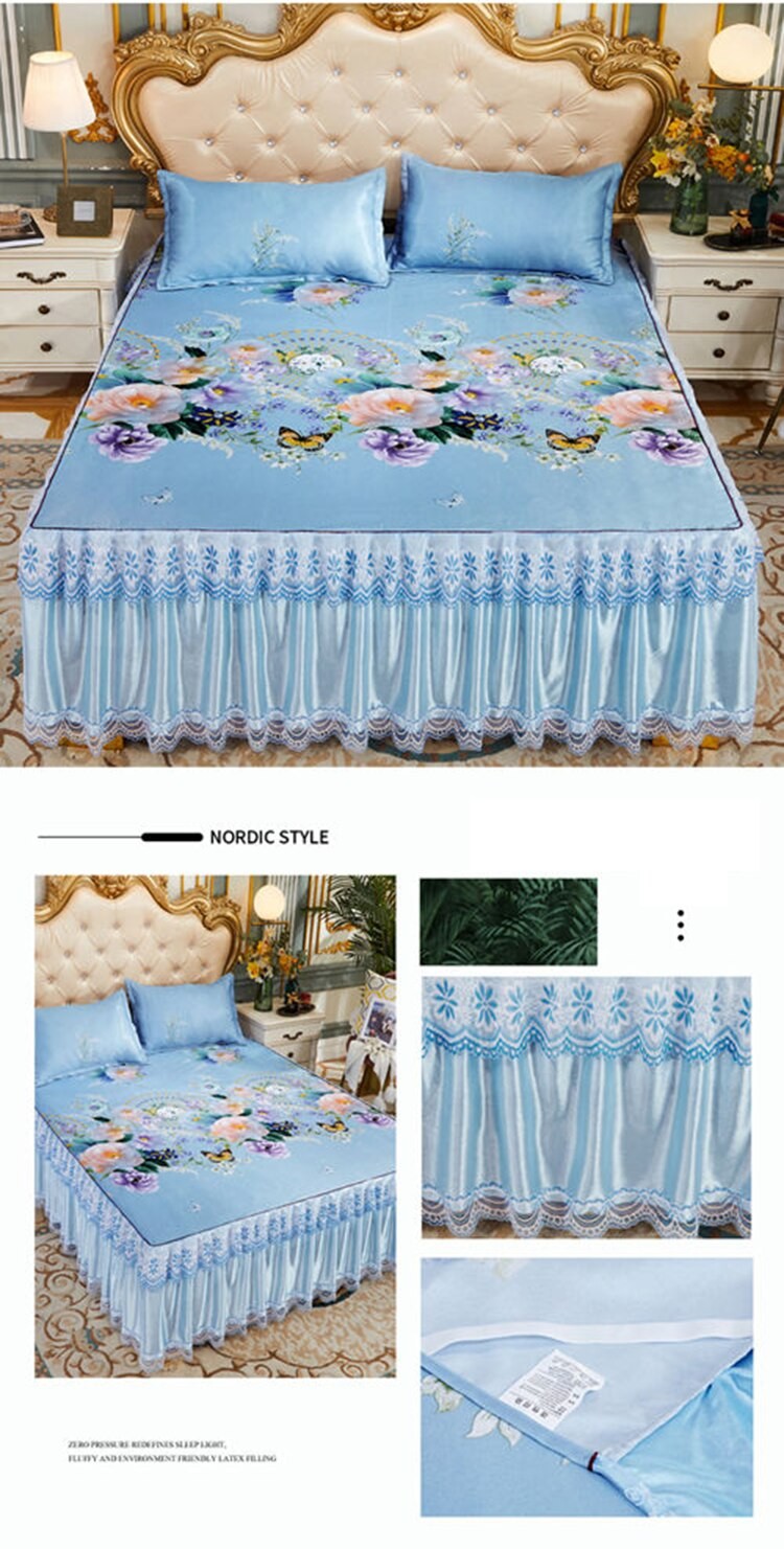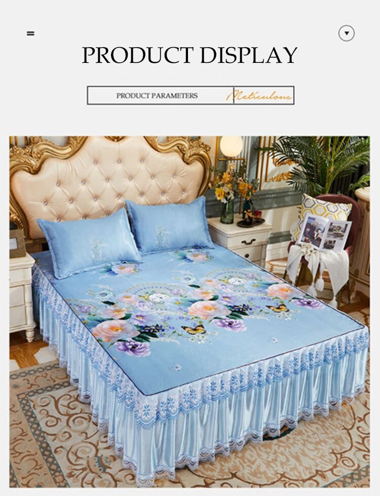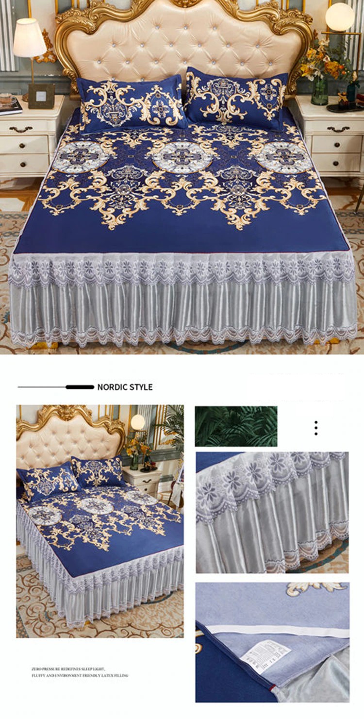 Kraliyet Mavi Yatak Örtüsü Katlanabilir Çarşaf Moda Yatak Çarşafları Altın Dantel Çarşaf Makine Yıkanabilir Yatak Örtüsü Kraliçe Kral