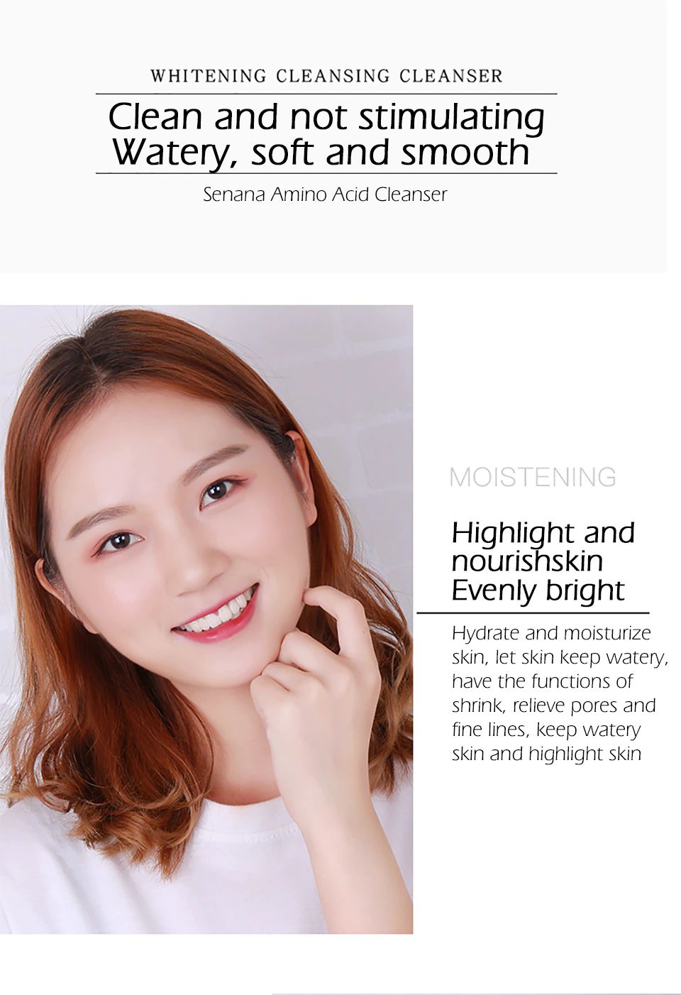 Senana Amino asit temizleyici ▶Cildi eşit derecede parlak ve besler Hidrat ve nemlendirir cilt, cilt sulu tutmak, küçültmek, gözenekleri ve ince çizgileri rahatlatmak, sulu cilt tutmak ve cildi vurgulamak ▶Denge suyu ve yağ Immaculately ihale Nemlendirici ve temizleme etkisi var, cilt üzerinde aşırı yağ ve kir temizleyin, siyah nokta rahatlatmak, su ve yağ dengelemek ve cildi temizlemek ve nemlendirmek
