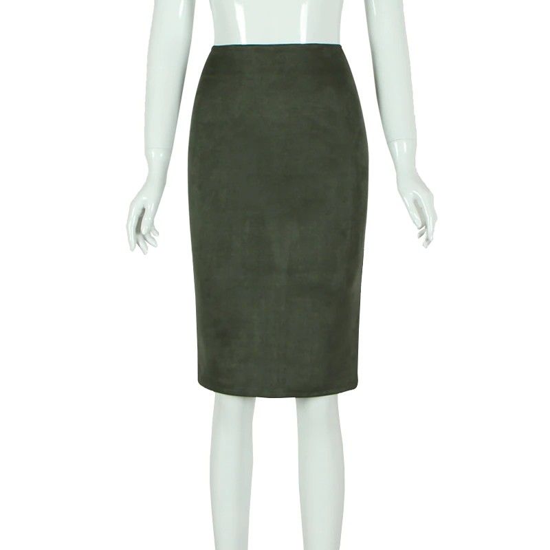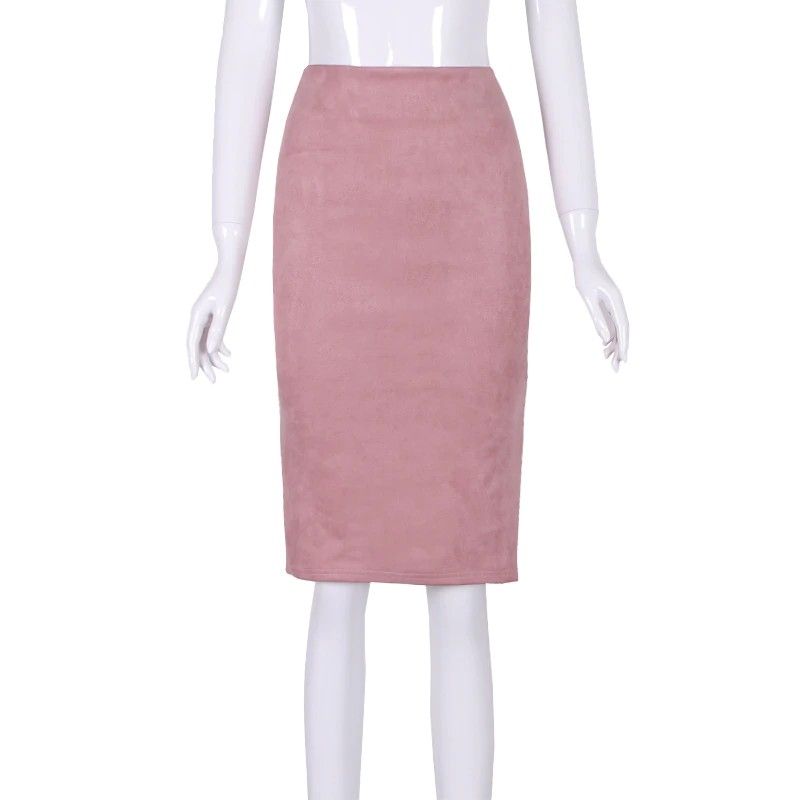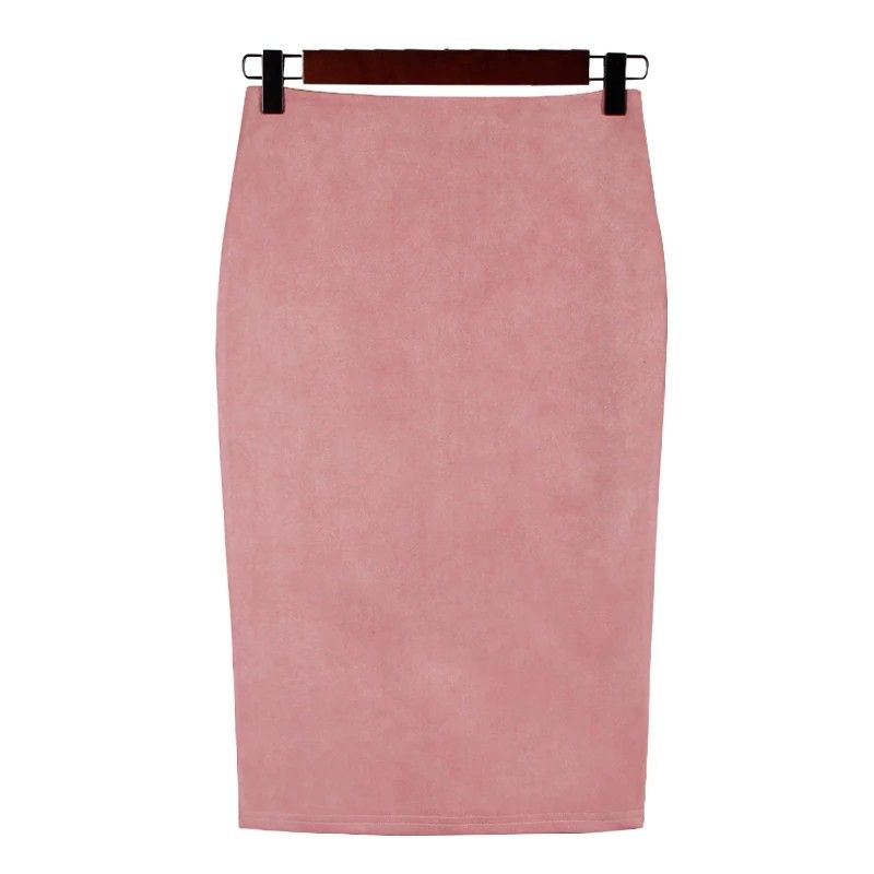 Seksi Çok Renkli Süet Midi Kalem Etek Kadın en yeni Moda Elastik Yüksek Bel Ofis Bayan Bodycon Etekler Saias