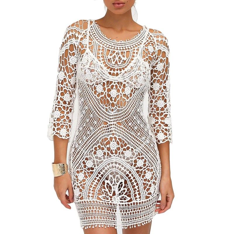 Seksi Kadın Mayo Cover Up Tığ Işi Dantel Bikini Mayo Önlük Örgü Mayo Örgü Plaj Elbise Tunik Elbise