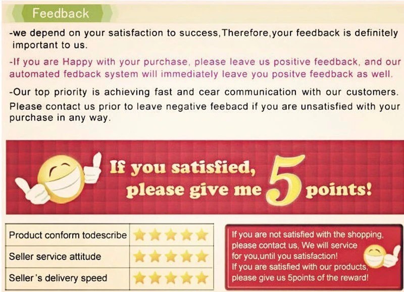 Arızalı, hasarlı veya yanlış gönderilen ürünler tam bir geri ödeme için uygundur. Geri ödemenizi talep ederken, lütfen sorunu öğelerle açıkça gösteren fotoğraflarla müşteri hizmetleri sunmaya hazır olun. Öğelerinizin nakliye sırasında hasar gördüğünü düşünüyorsanız, müşteri hizmetlerinin hasarlı ambalajı ve geri ödemenizi işlemek için teslimat operatörünüzden "hasar kanıtı" belgelerini gösteren fotoğraflara ihtiyacı olacaktır.
