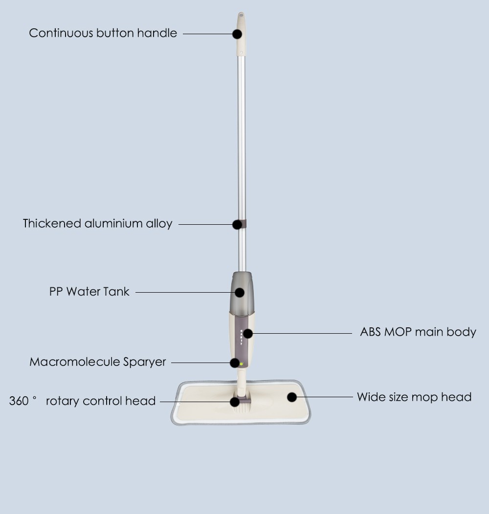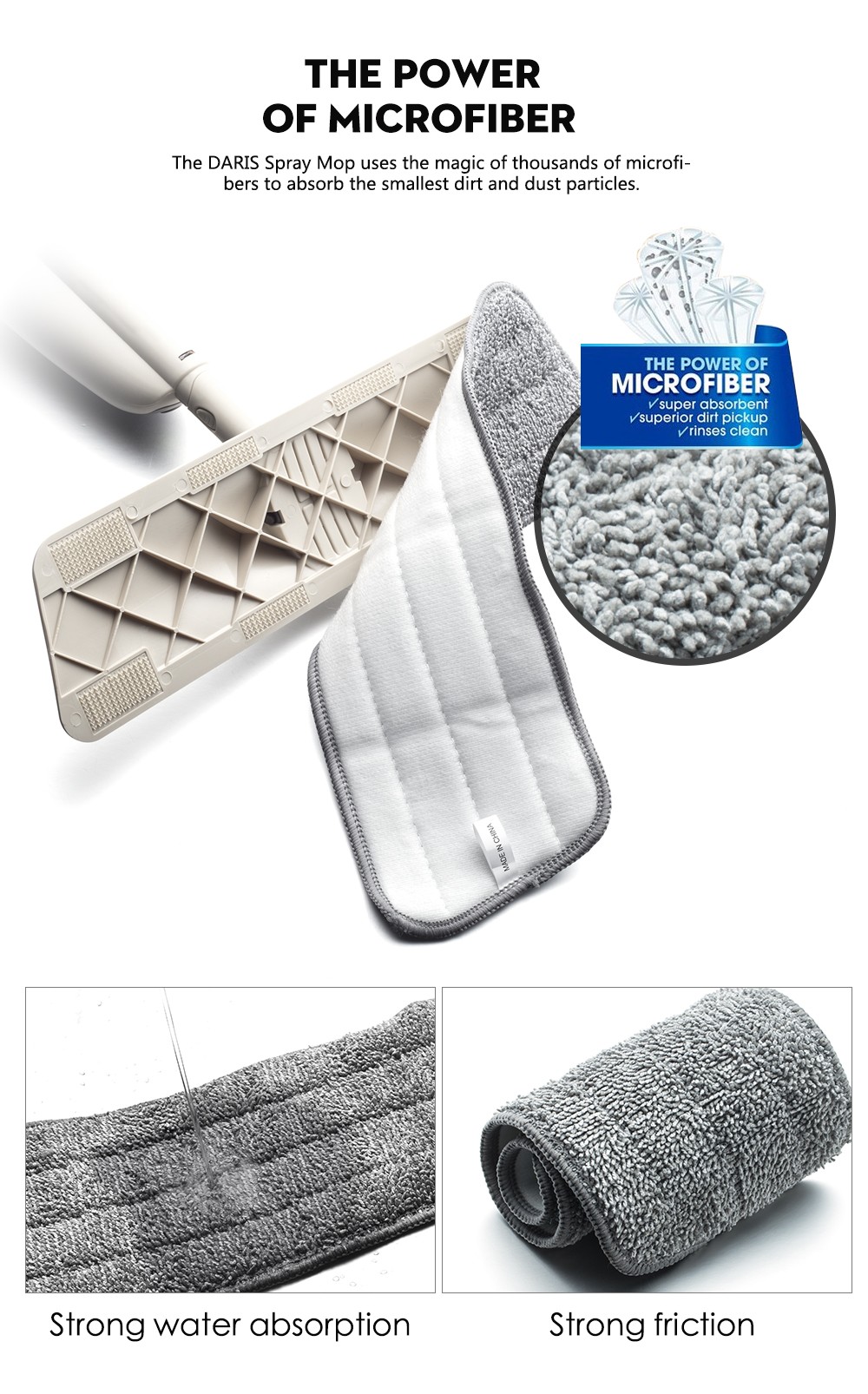 Sprey Zemin Paspası Yeniden Kullanılabilir Mikrofiber Pedleri 360 Derece Kolu Paspas Ev Mutfak Laminat Ahşap Seramik Fayans Zemin Temizleme