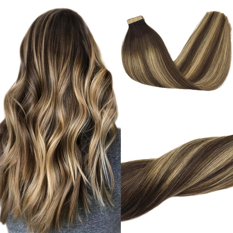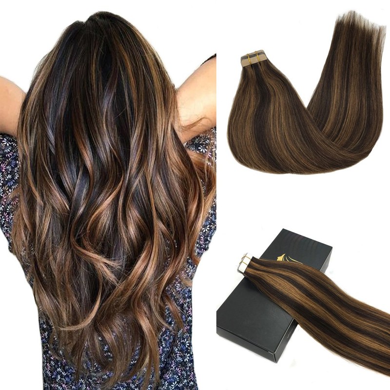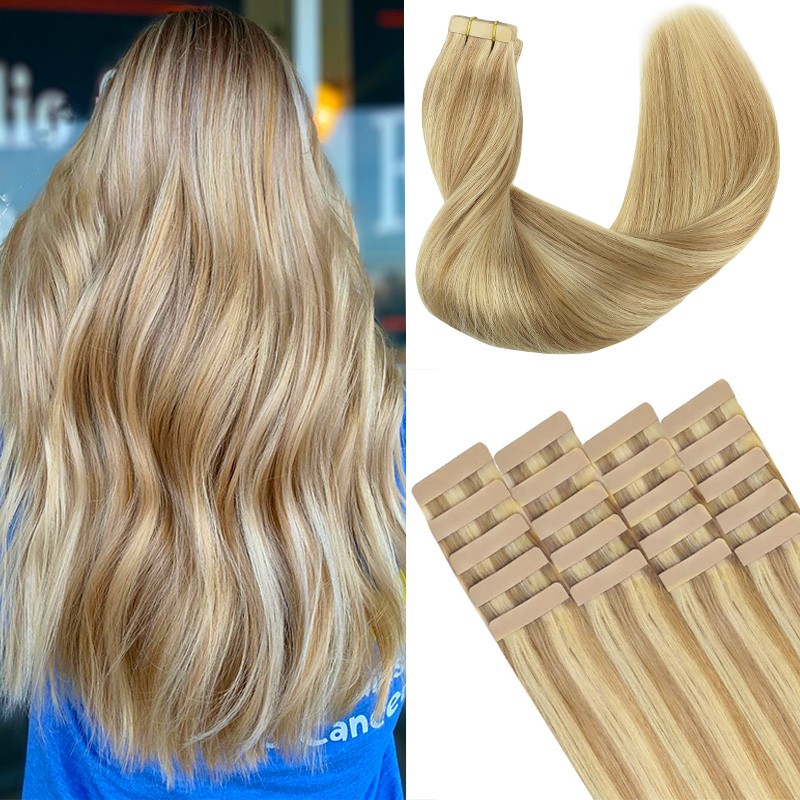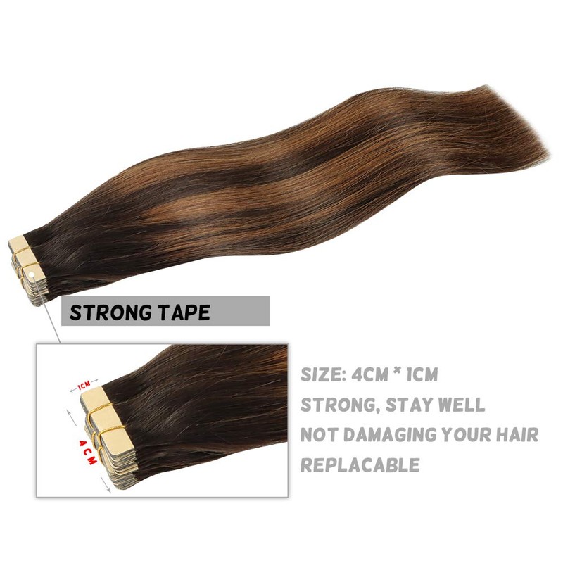 Düz Bant Insan Saçı Postiş Dikişsiz Görünmez Doğal Remy Saç Cilt Atkı Yapışkan Uzatma Kahverengi Sarışın 20 Adet