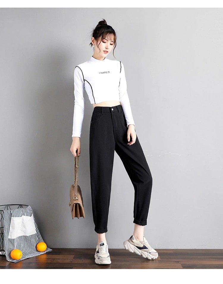 Syiwidii Kadınlar Için Yüksek Bel Kot Kot Pantolon Sokak Stiller Vintage Streetwear Elastik Bel Siyah Kot Kore Moda Anne
