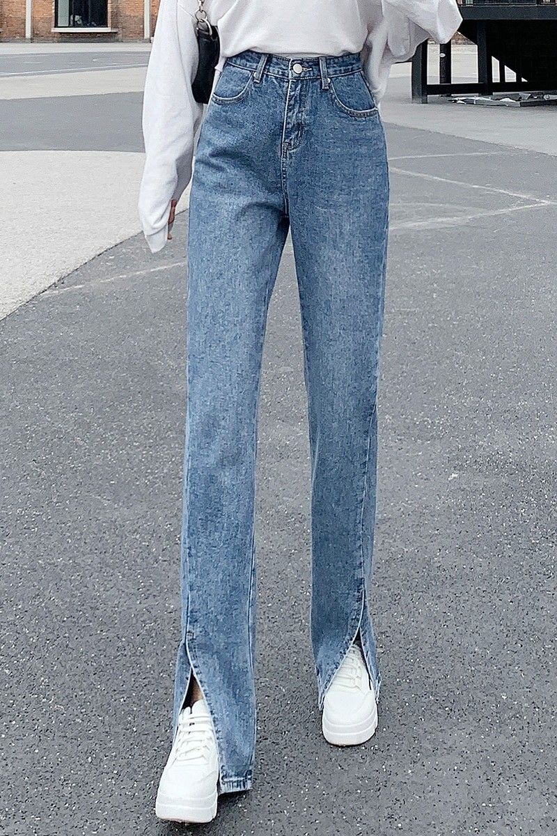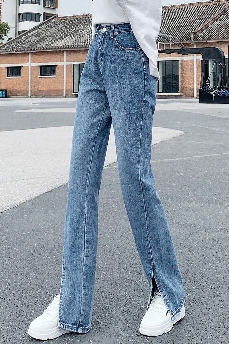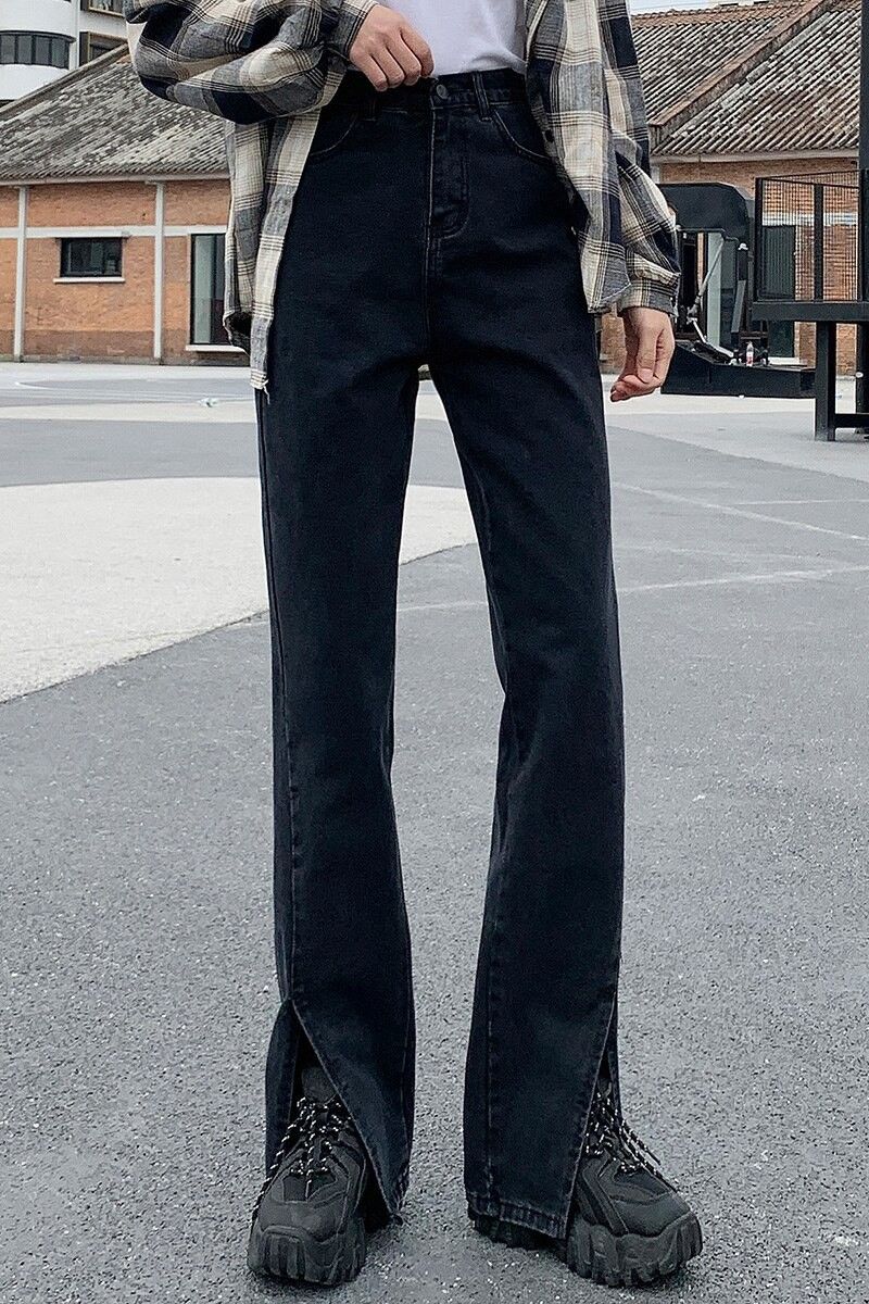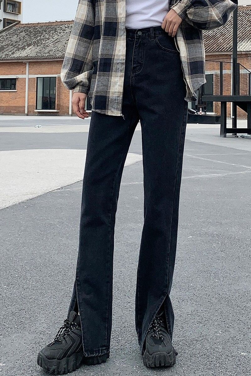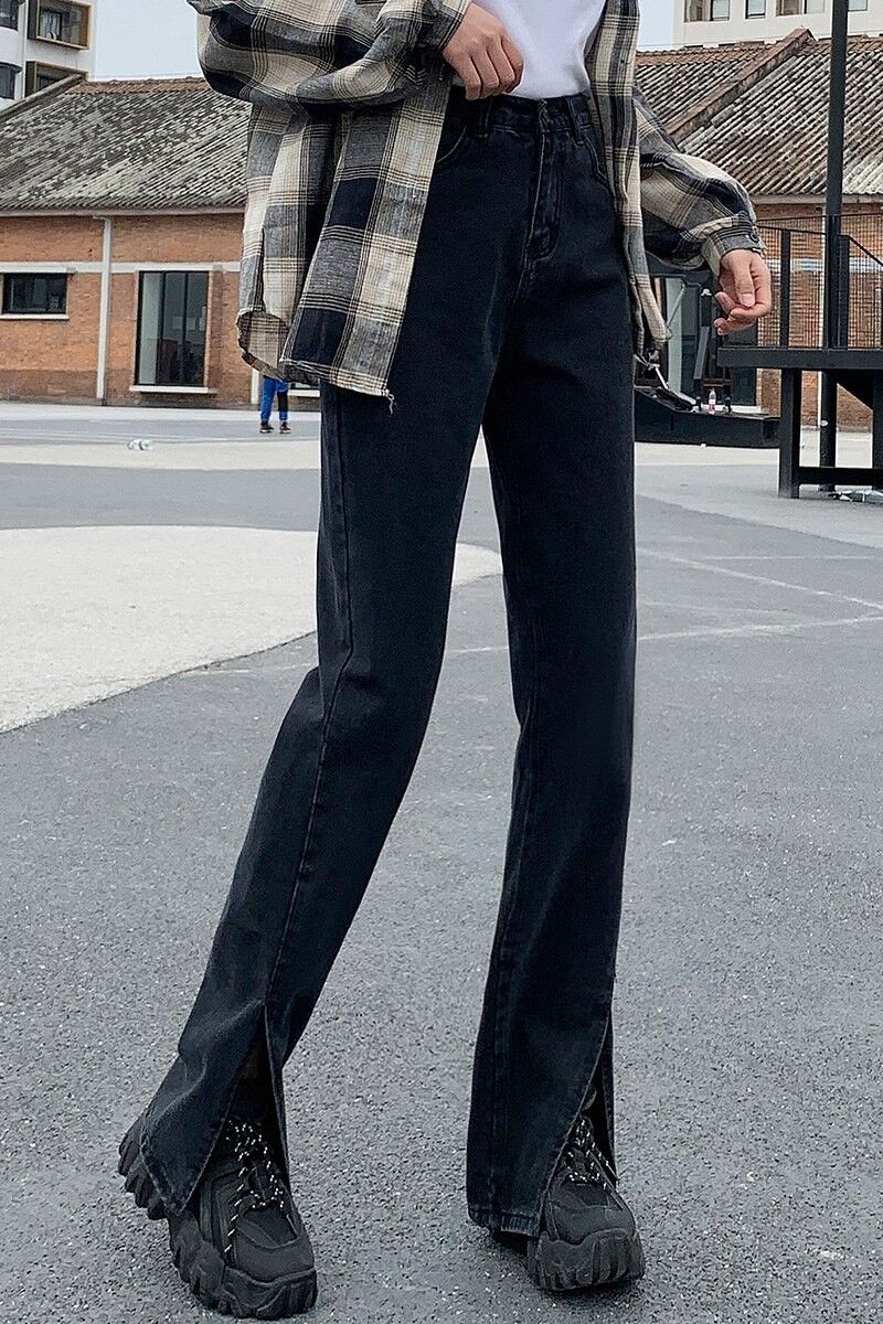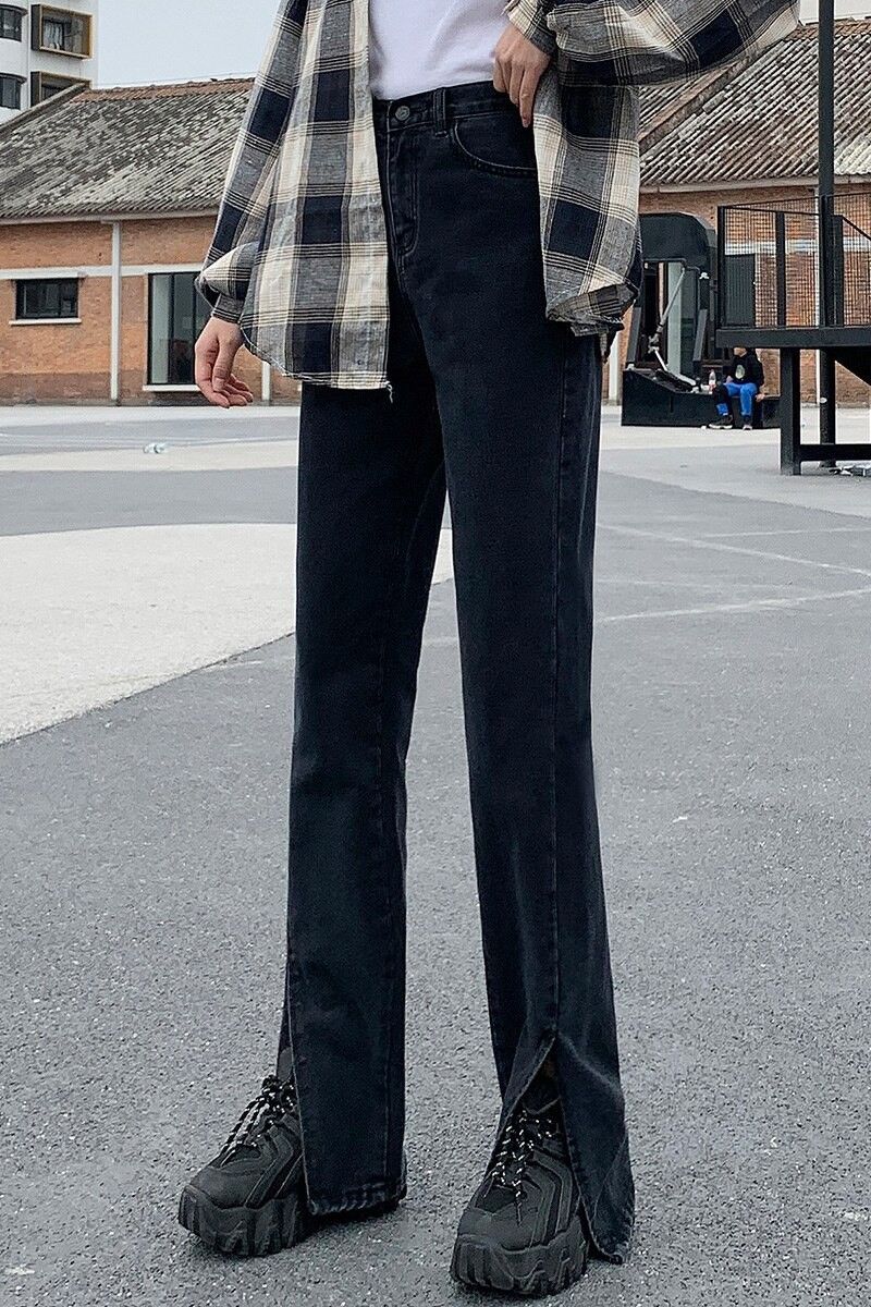 Syiwidii Kadın Kot Siyah parlama Pantolon Ön Yan Yarık Bacak en yeni Sonbahar Yüksek Belli Kot Çan Alt Kot tam Boy Denim Giysi