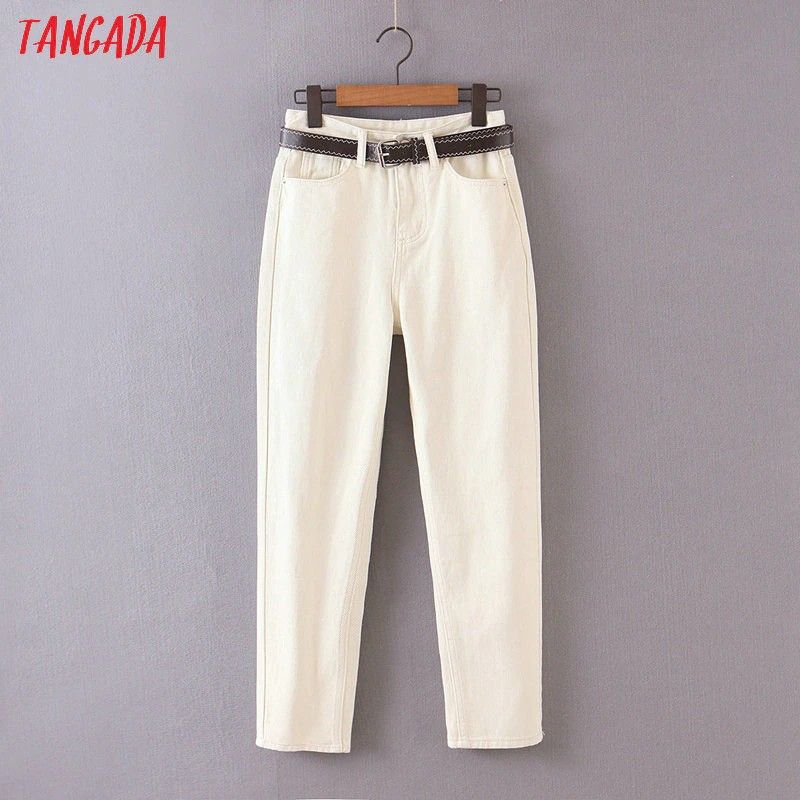 Tangada en yeni Moda Kadın Anne Kot Pantolon Kemer Ile Uzun Pantolon esnek Bel Cepler Fermuar Kadın Pantolon Hy41