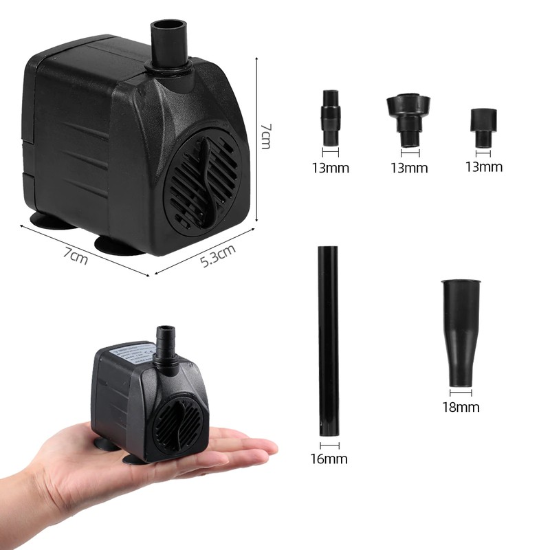 Bu su pompası akvaryum çeşme ve balık tankı, vb için dalgıç için uygundur. LED ışık, düşük gürültü ve yüksek verimlilik ile. Bu pompa su akışı yaratır ve doğal okyanus veya nehir ortamını simüle etmek için akvaryumunuzu havalandırır.