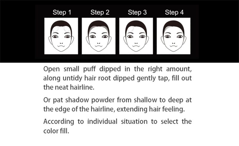 Açık küçük puf doğru miktarda daldırma, düzensiz saç kökü boyunca hafifçe hafifçe dokunun, düzgün saç çizgisini doldurun. Ya da saç çizgisinin kenarında sığ ila derin pat gölge tozu, saç hissi uzatır. Renk doldurmasını seçmek için bireysel duruma göre.