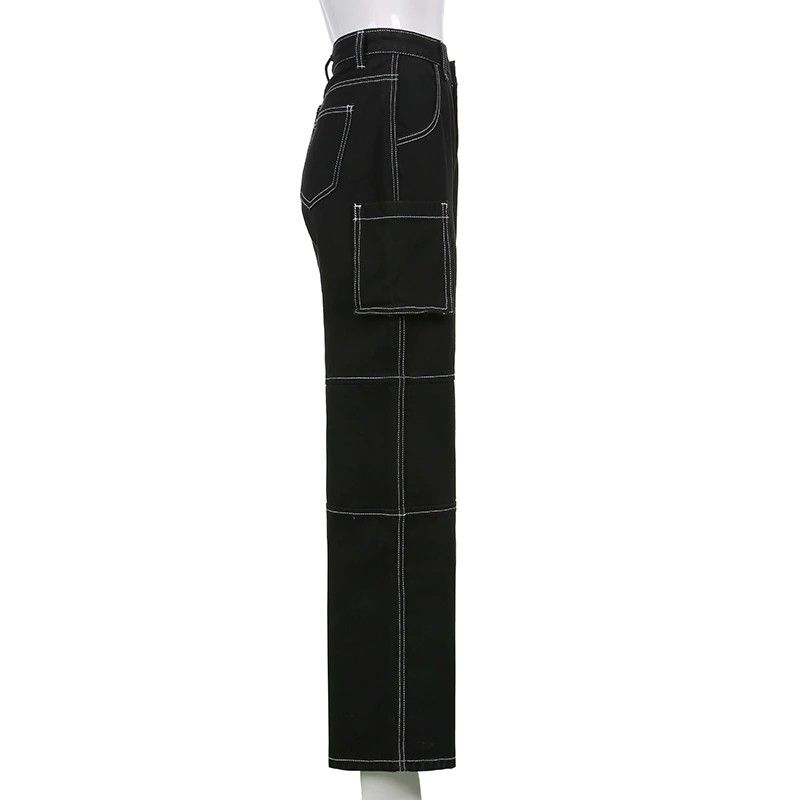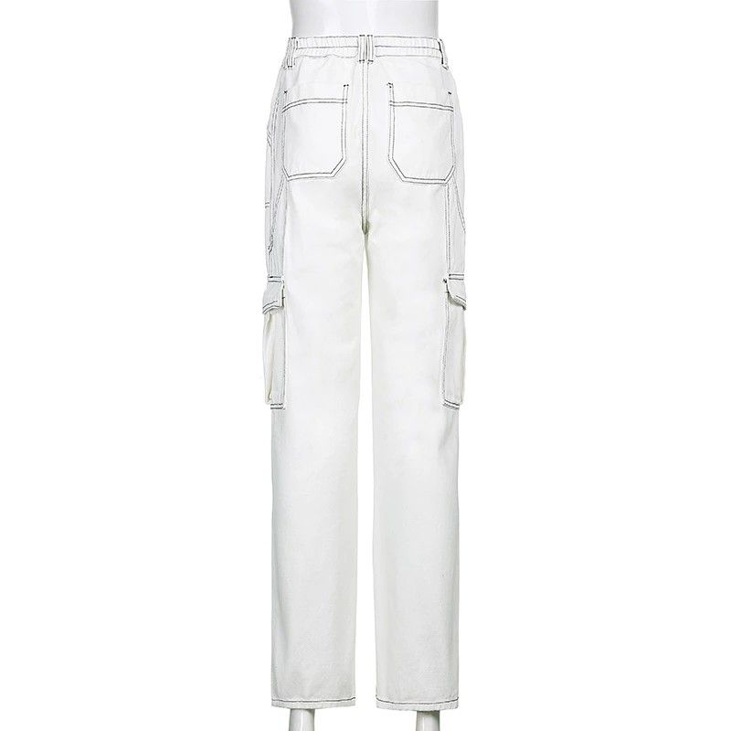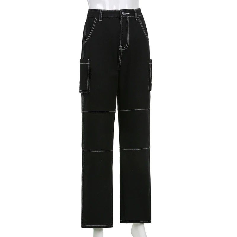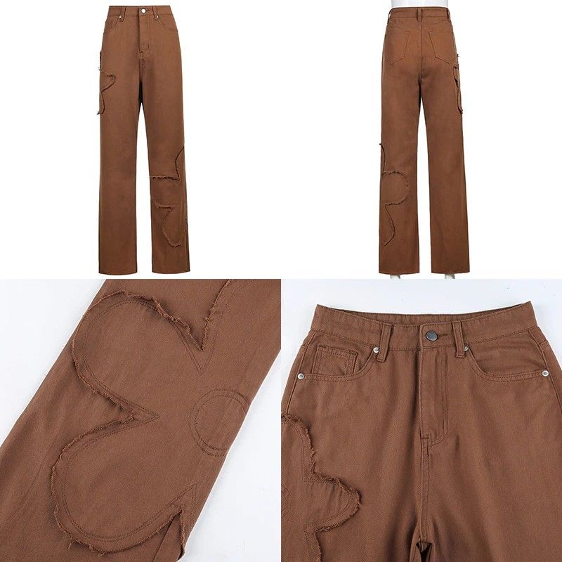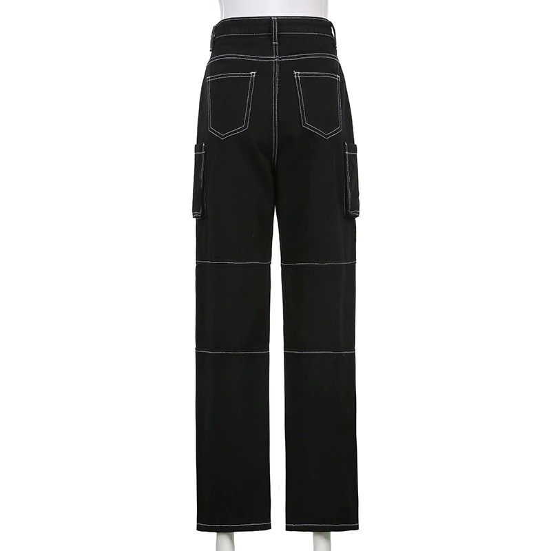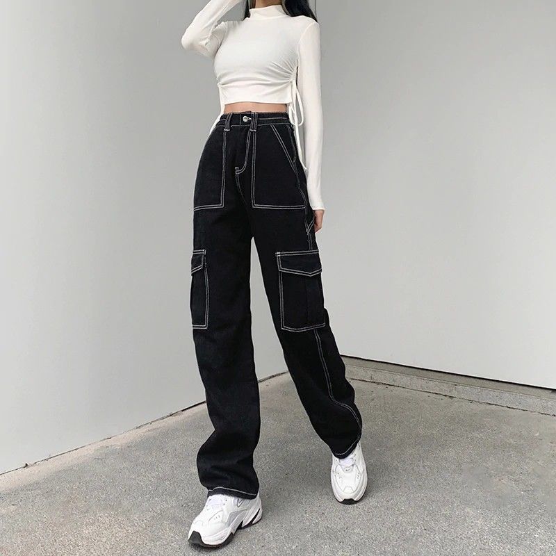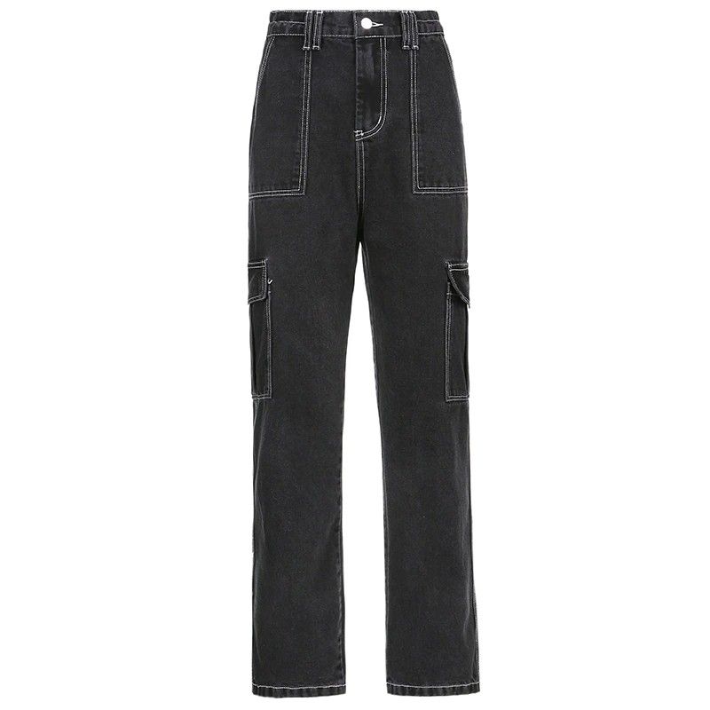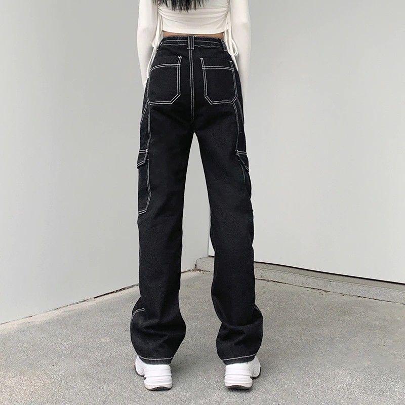 Weekeep Cepler yama işi Baggy Kot Moda Streetwear % 100% Pamuk Kadın Kot Pantolon Gevşek Kargo Pantolon Kore Kotu Harajuku