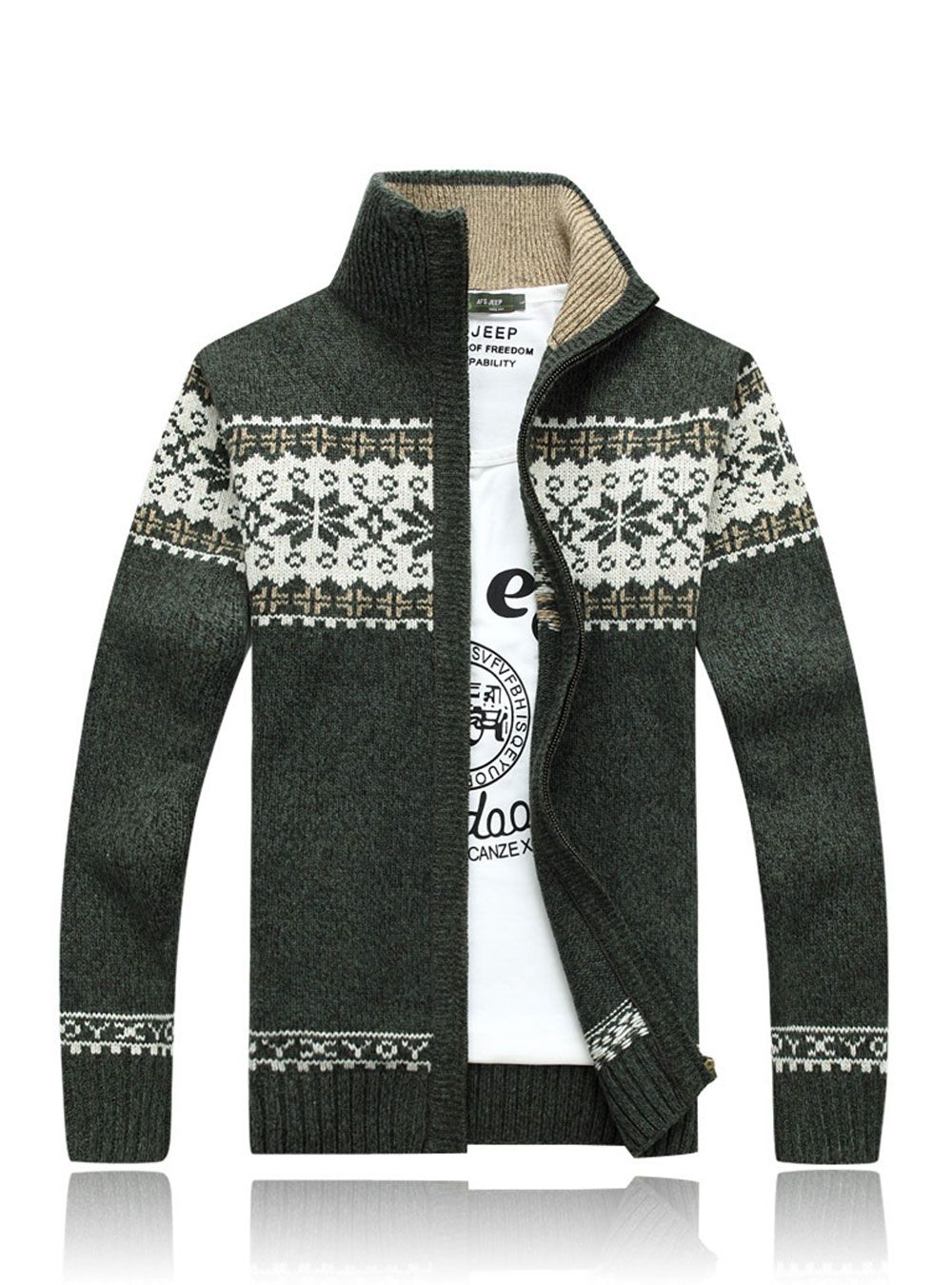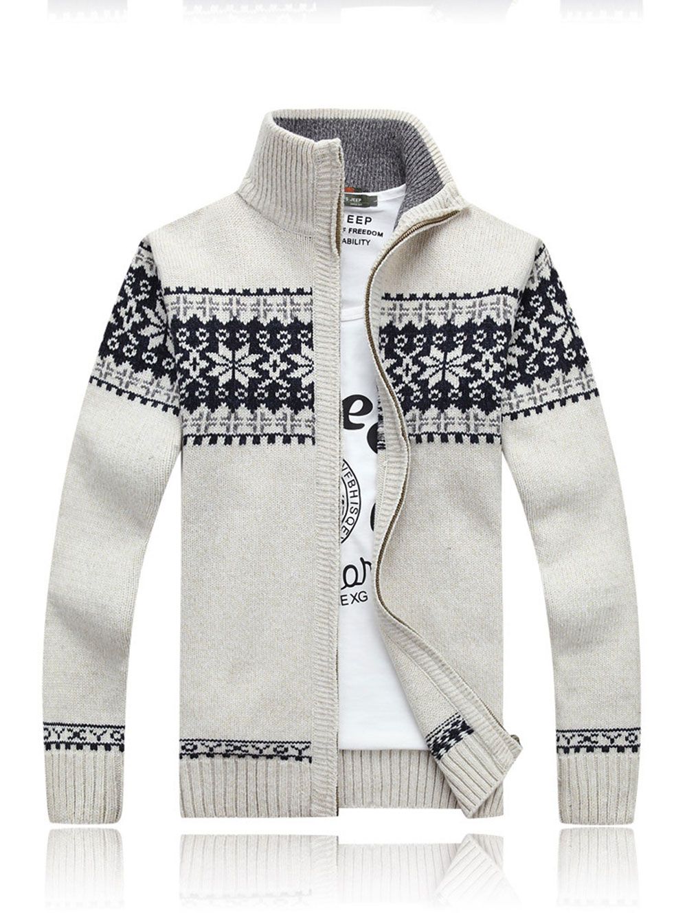 Kış Kalın Erkek Örme Kazak Ceket Beyaz Uzun Kollu Hırka kutup Tam Zip Erkek Nedensel Artı Boyutu Giyim Sonbahar Için