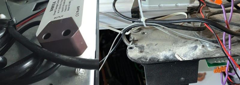 Her iki ucu soyulmuş veya düzleştirilmiş bir kağıt klipsli bir kabloyu, açıcıdaki duvar düğmesi terminalini kısa devre yapmak için alın (kırmızı renkle işaretlenmiş). Garaj kapısı açılırsa veya kapanırsa, bizim akıllı kontrolör ile çalışabilir.