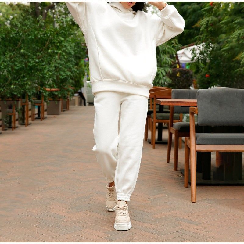 Kadın Hoodies Iki Parçalı Set Uzun Kollu Katı Rahat Cep Kazak Takım Elbise Bahar en yeni Elastik Spor Pantolon Kadın Eşofman