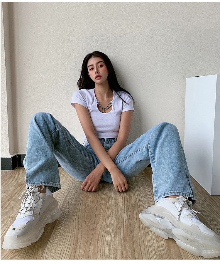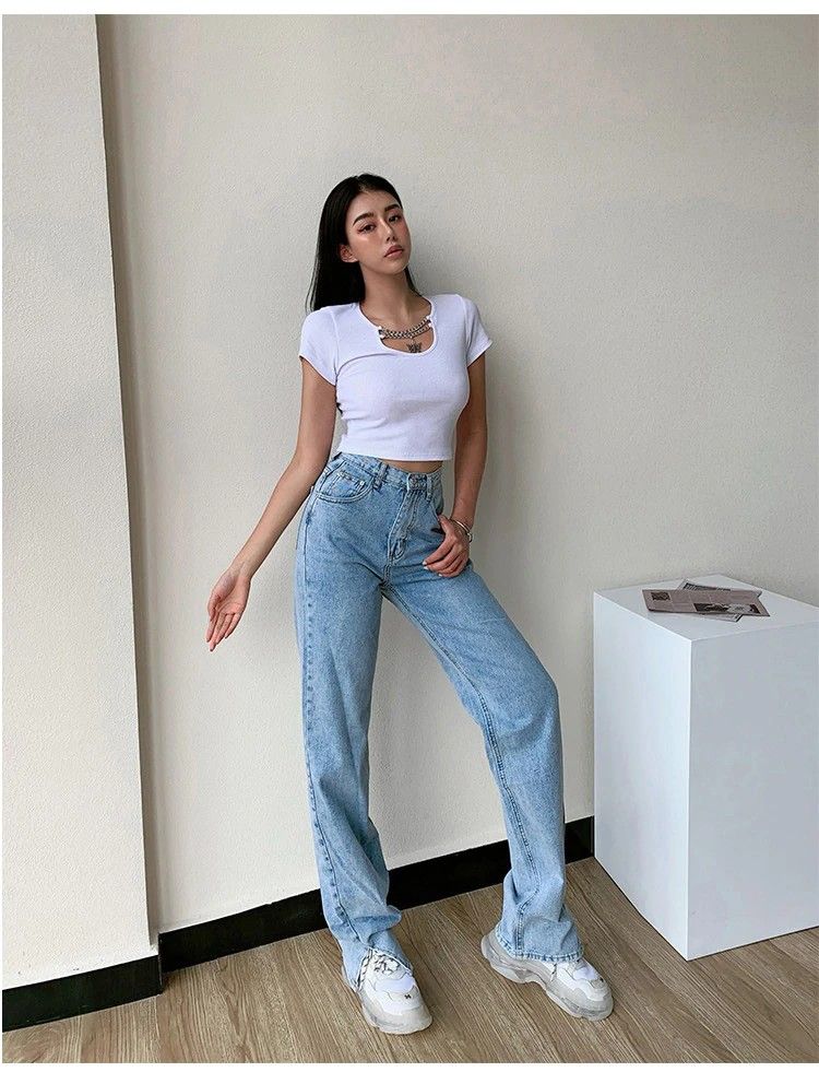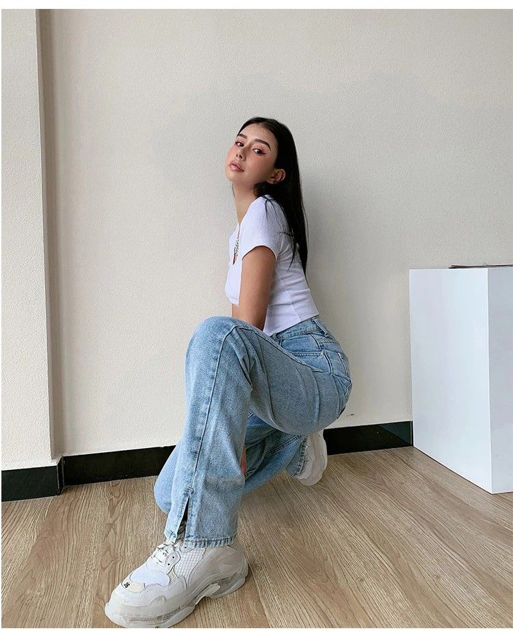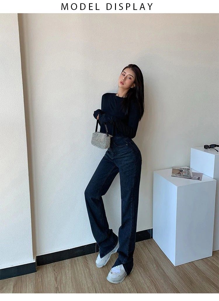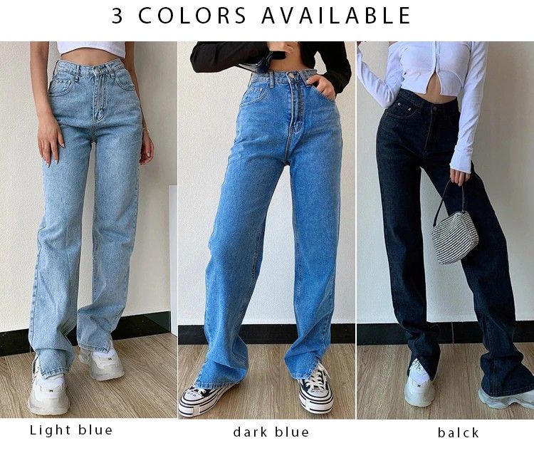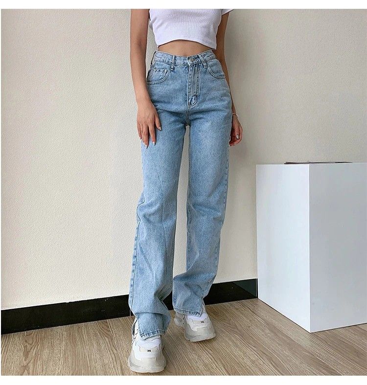 Kadın Pantolonları Düz Bacak Kot Kadınlar Yüksek Bel İnce Gevşek Sonbahar Kış Pantolonları Rahat Bölünmüş Yıkanmış Anne Moda Pantolon