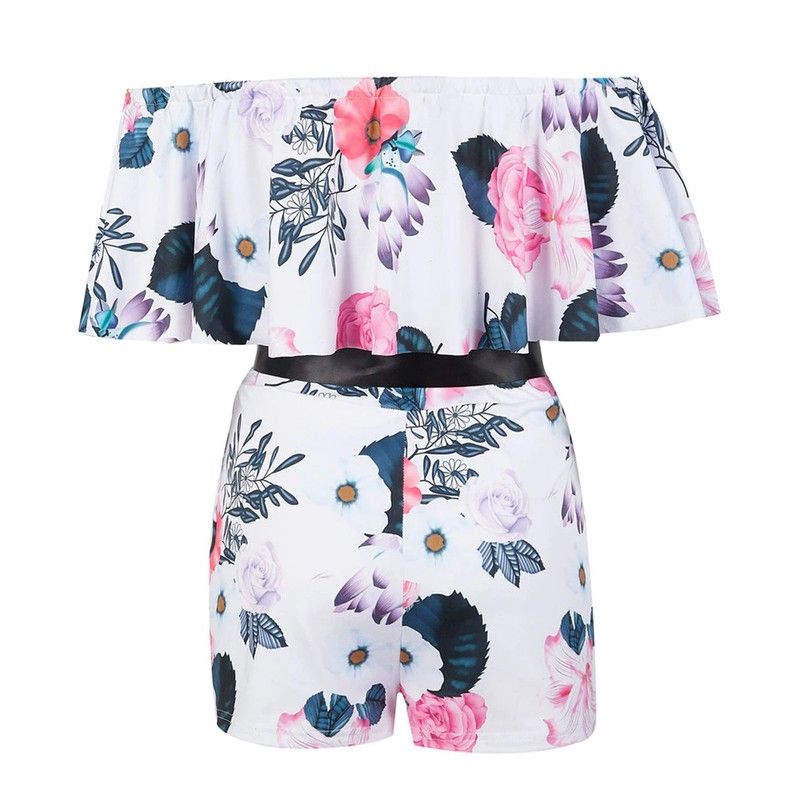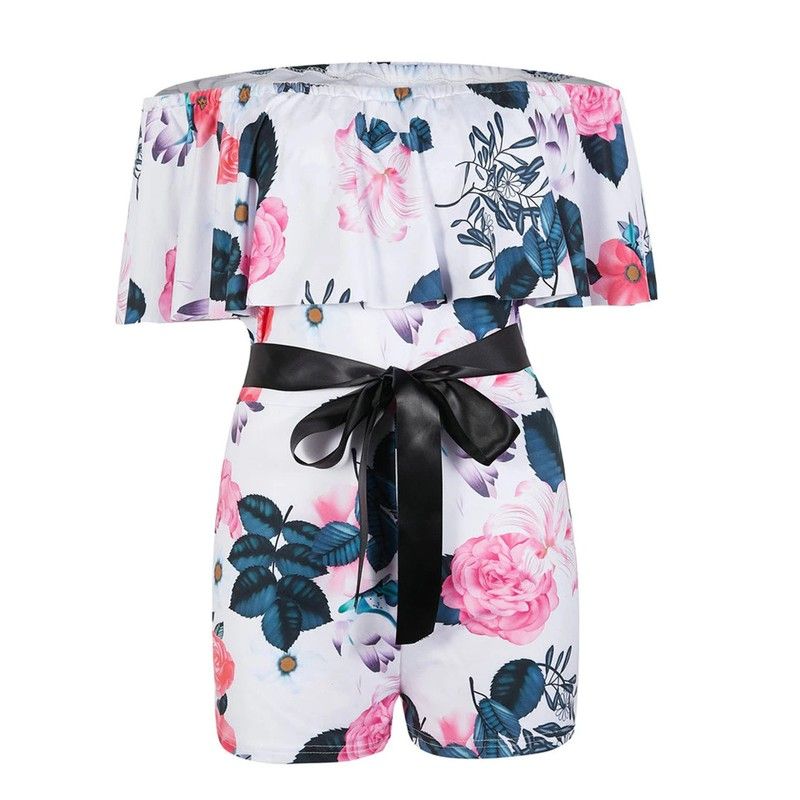 Kadın Playsuits Streetwear Için Patchwork Tasarım Kemer dekor Bir Boyun Kapalı Omuz Kısa Kollu Baskı Yaz Ince Tulumlar