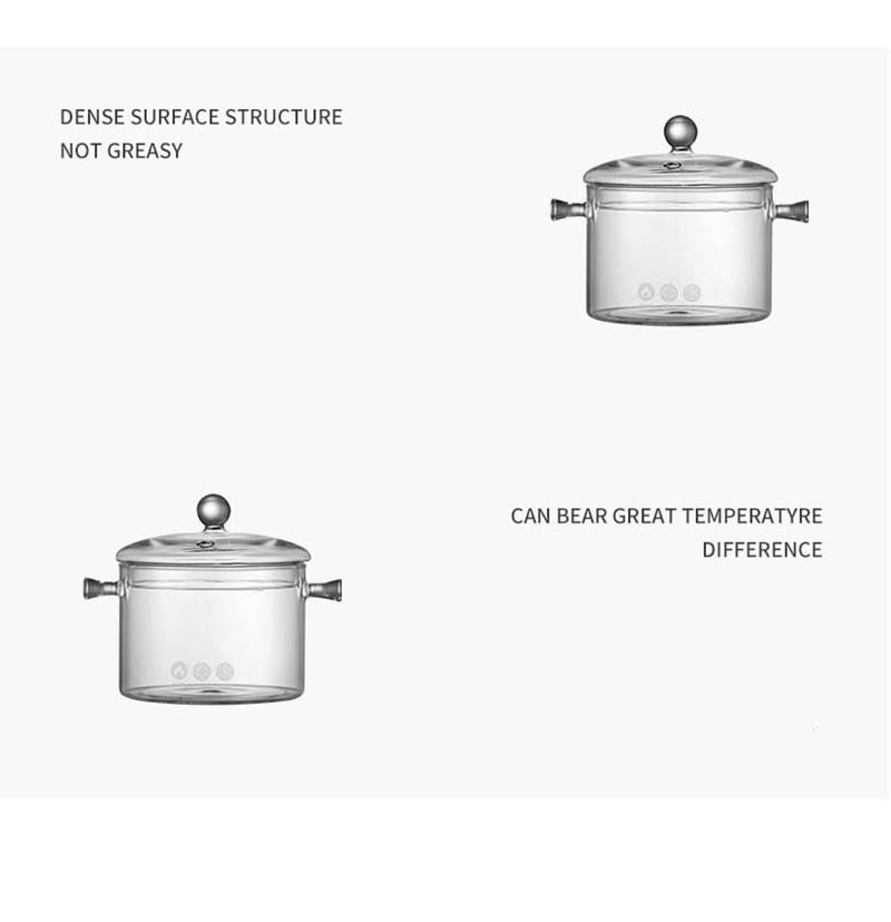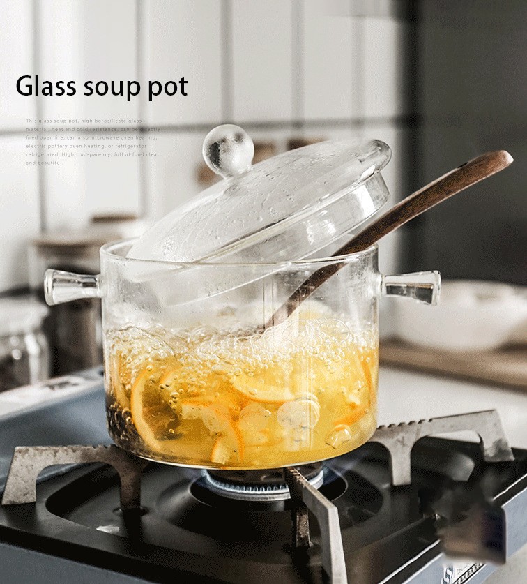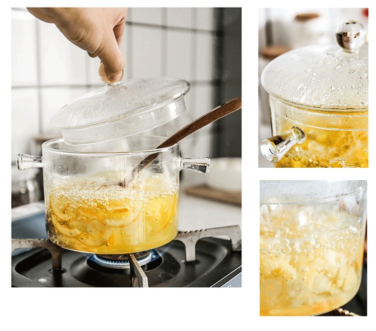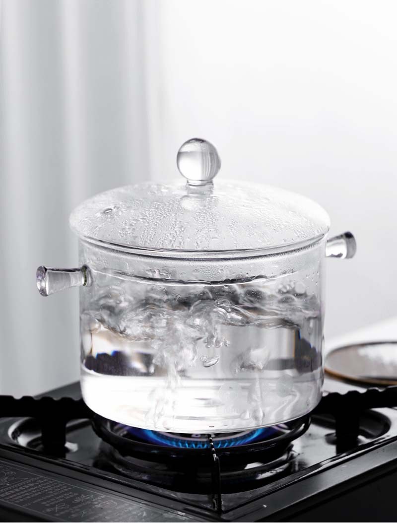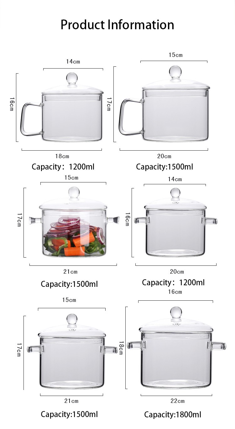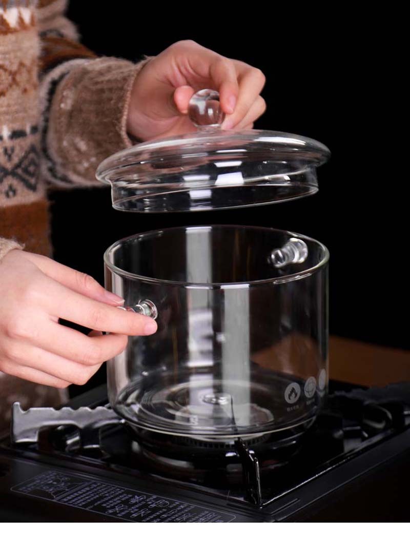 높은 붕 규산염 내열 유리로 만든 유리 냄비는 갑작스러운 열과 갑작스러운 추위와 내구성이 뛰어나고 안전성을 견딜 수 있습니다.