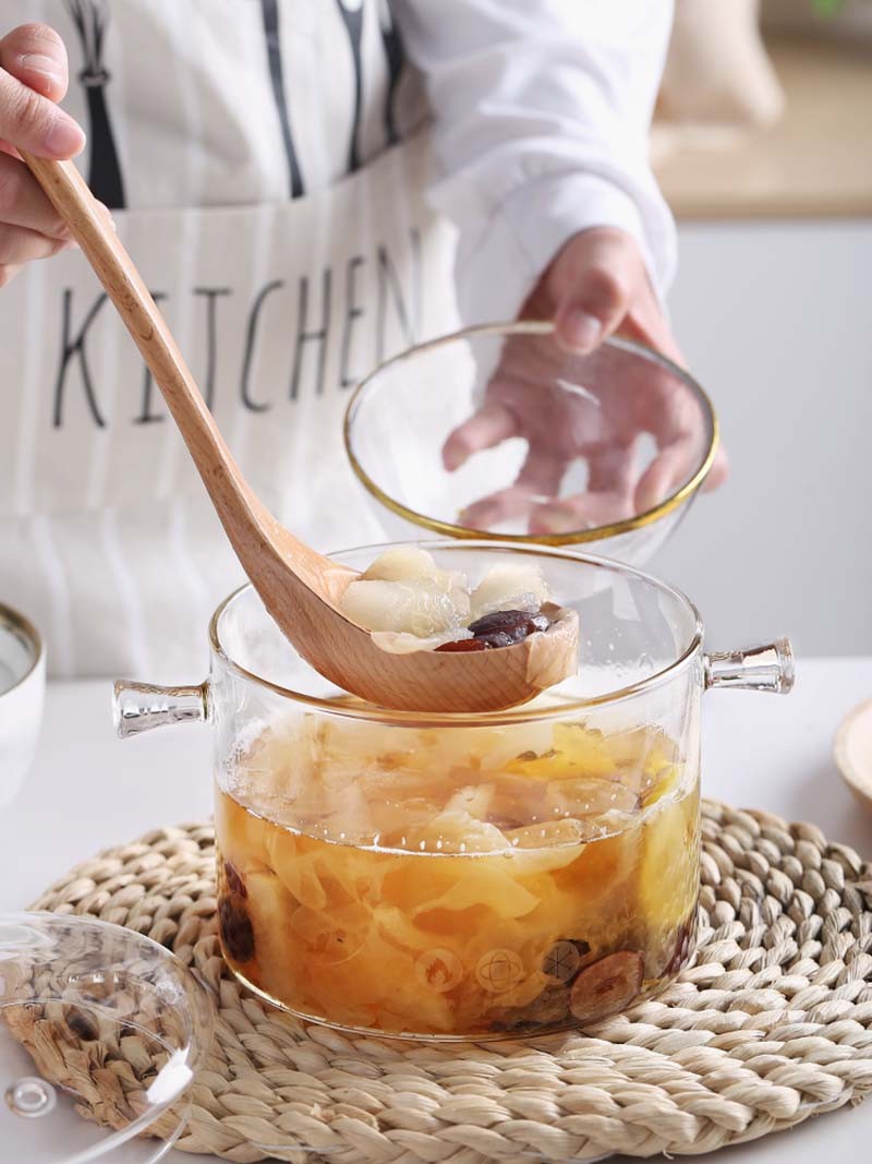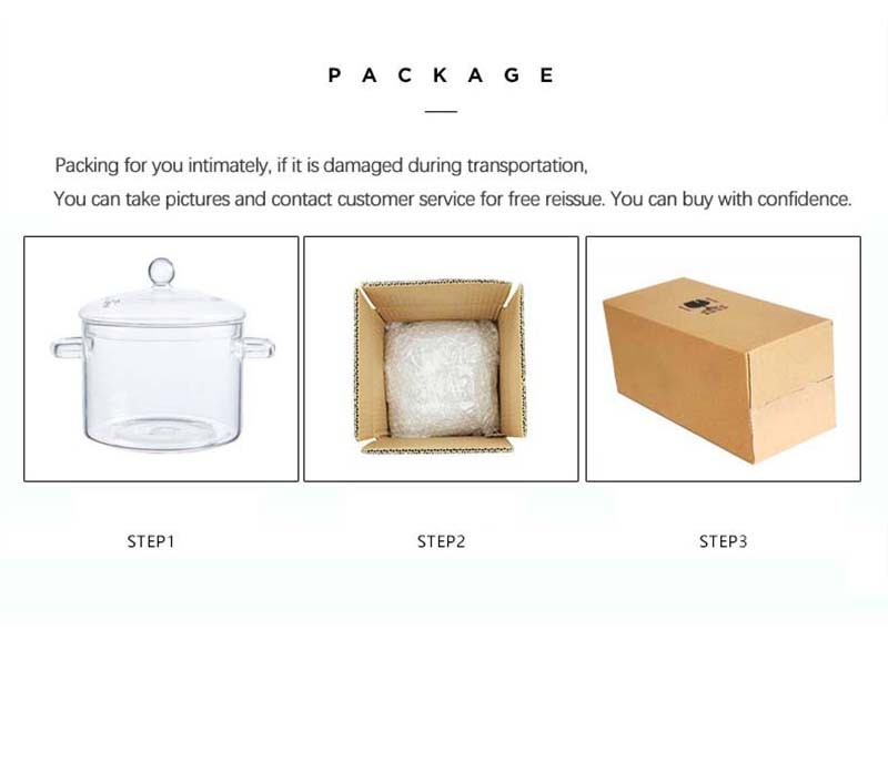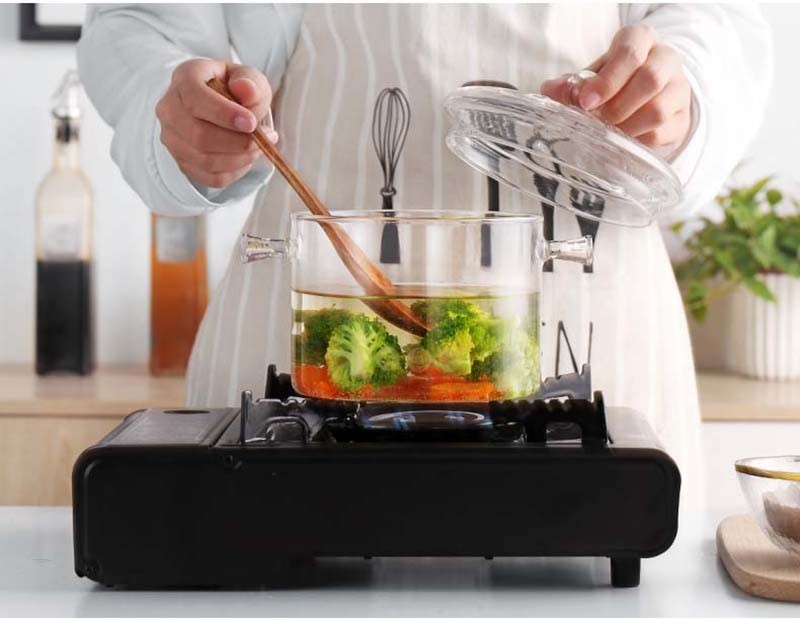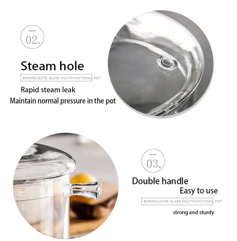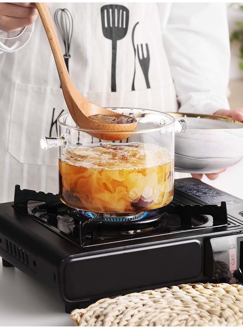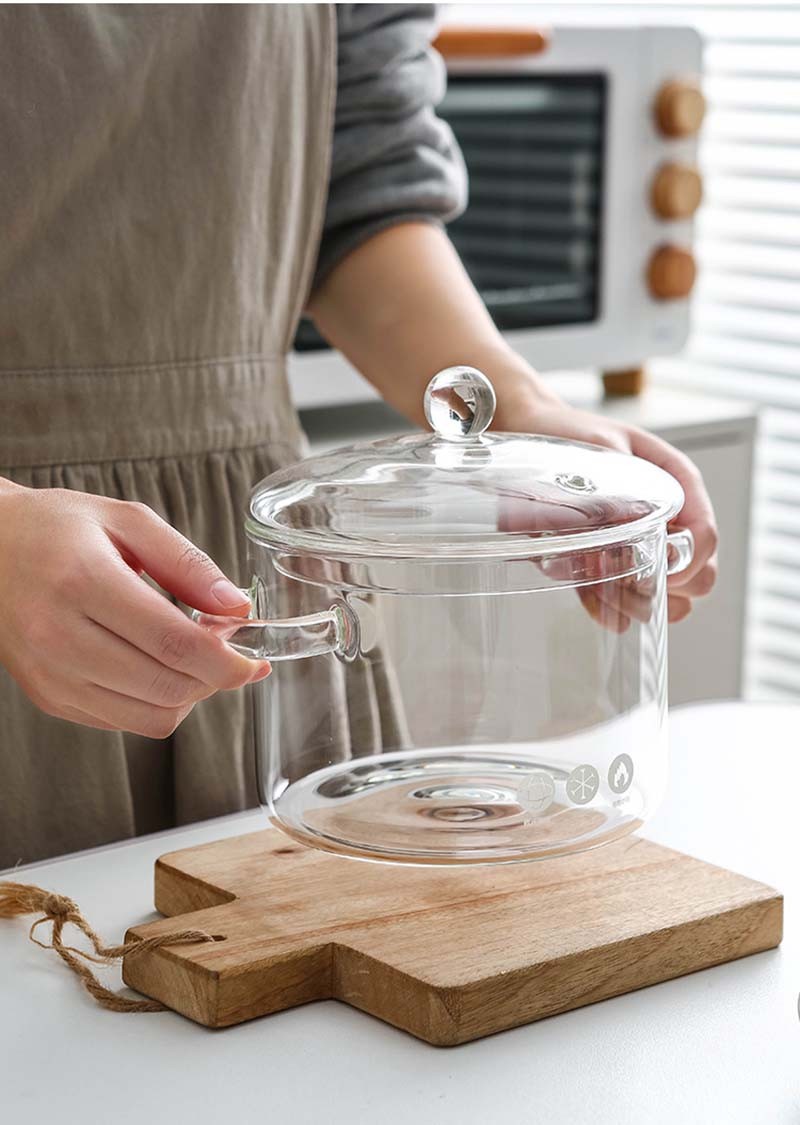 높은 붕 규산염 내열 유리로 만든 유리 냄비는 갑작스러운 열과 갑작스러운 추위와 내구성이 뛰어나고 안전성을 견딜 수 있습니다.