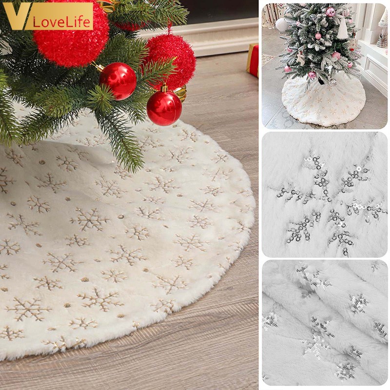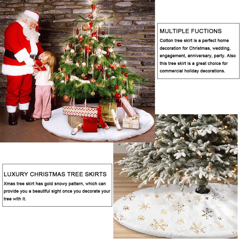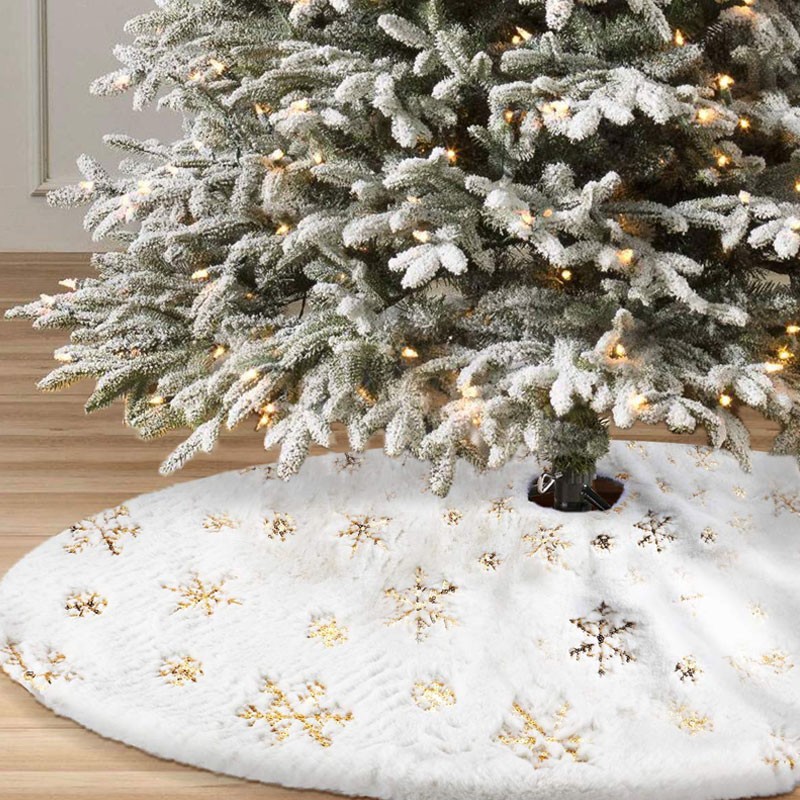 Name: Snowflake Plush Christmas Tree Skirt, White Christmas Tree Skirt