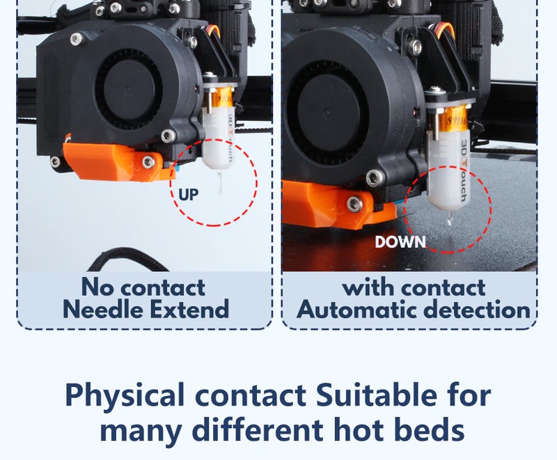 3D yazıcı dokunuşunun ana fonksiyonları ve kontrolleri, bir RC servo ve bir mikro anahtardan oluşan çoğu otomatik yatak tesviye sensörüyle aynıdır. 3D yazıcı dokunuşu hemen hemen her 3D yazıcı kontrol paneli üzerinde kullanılabilir.