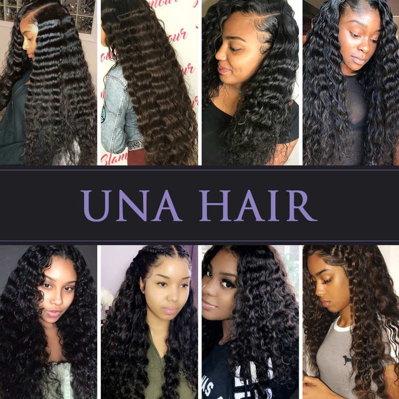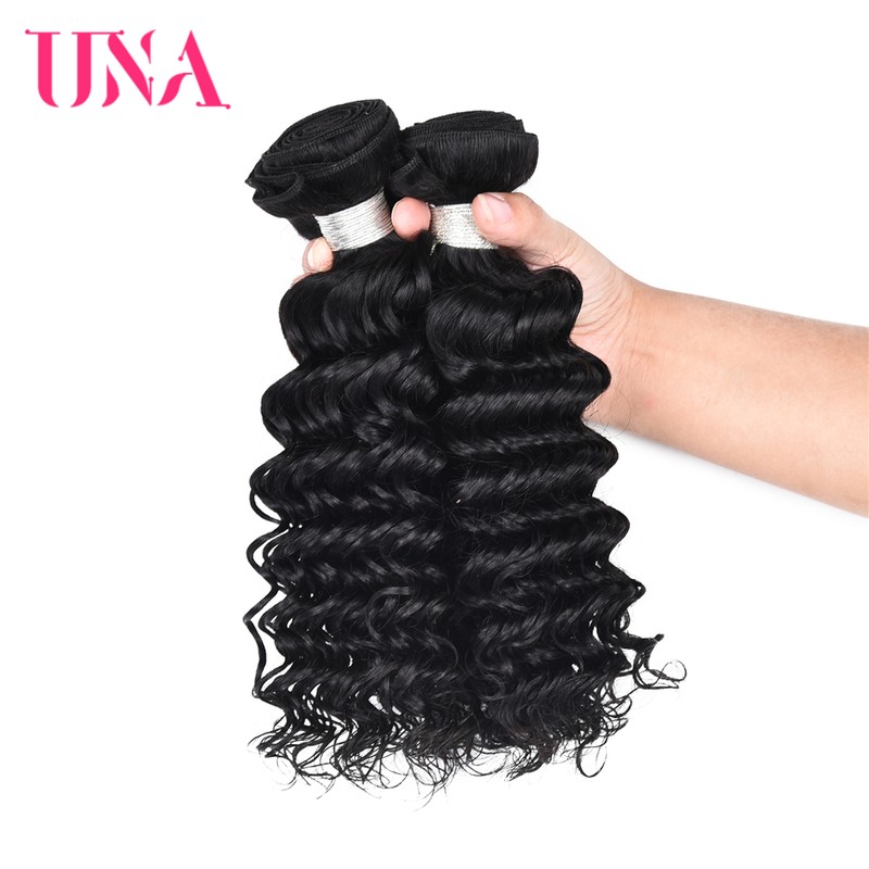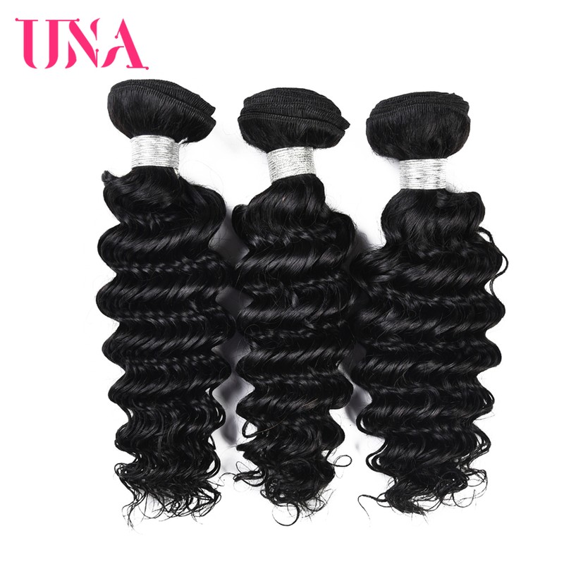 UNA 3 Bundles Human Deep Wave Hair 8"-26" Low Ratio Brazilian Remy Hair Bundles 100% Human Hair Bundles 100g Natural Color