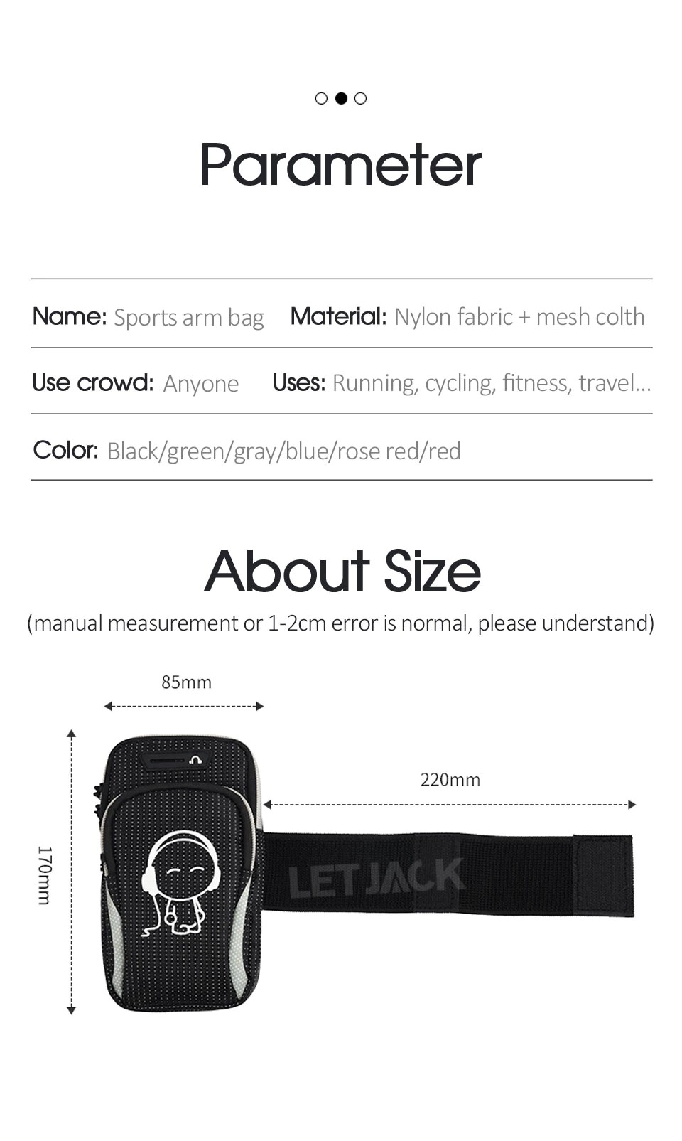 Matériau du sac à bras de sport: tissu en Nylon + maille colth.