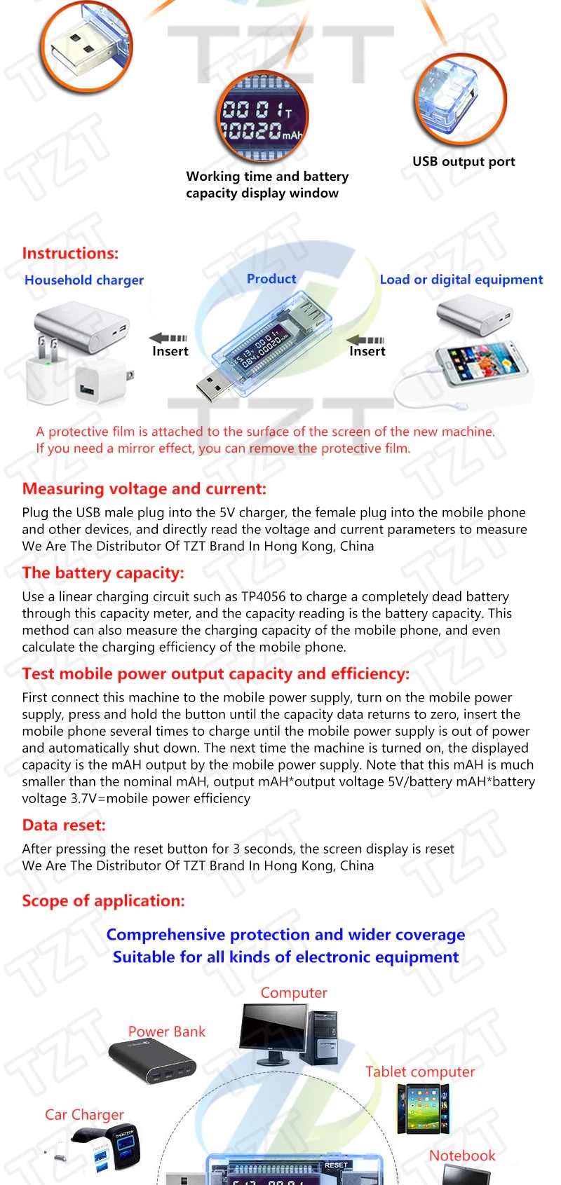 شاحن يو اس بي فاحص طبيب الجهد الحالي متر الفولتميتر مقياس التيار الكهربائي اختبار قدرة البطارية المحمول كاشف الطاقة