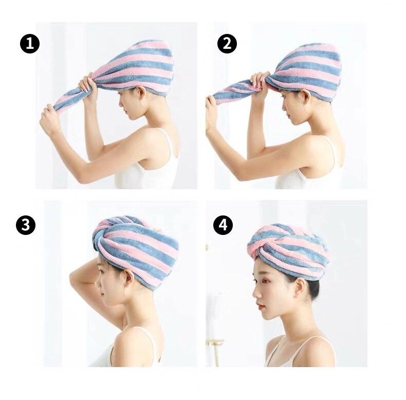 Feminino Meninas Toalhas De Banho Toalha De Microfibra Stripe Toalha Cabelo Magia Microfibra Touca De Banho Senhora Turbante Cabeça