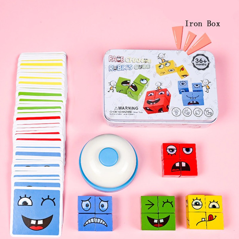 Rompecabezas De Expresión De Madera Para Niños, Bloques Construcción, Cubo De Cara Mágica Montessori Juguetes Educativos Aprendizaje Lógico, Regalo Con Caja