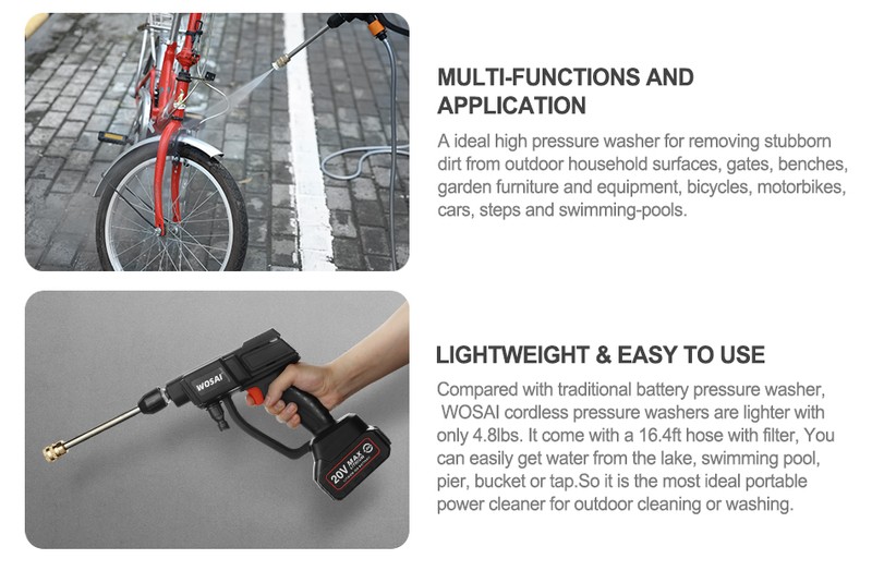 Wosai-Pistola De Lavado De Coche Eléctrica Alta Presión, Inalámbrica, 20V Boquilla Multifunción Limpiador Portátil Espuma, Pulverizador De Jardín