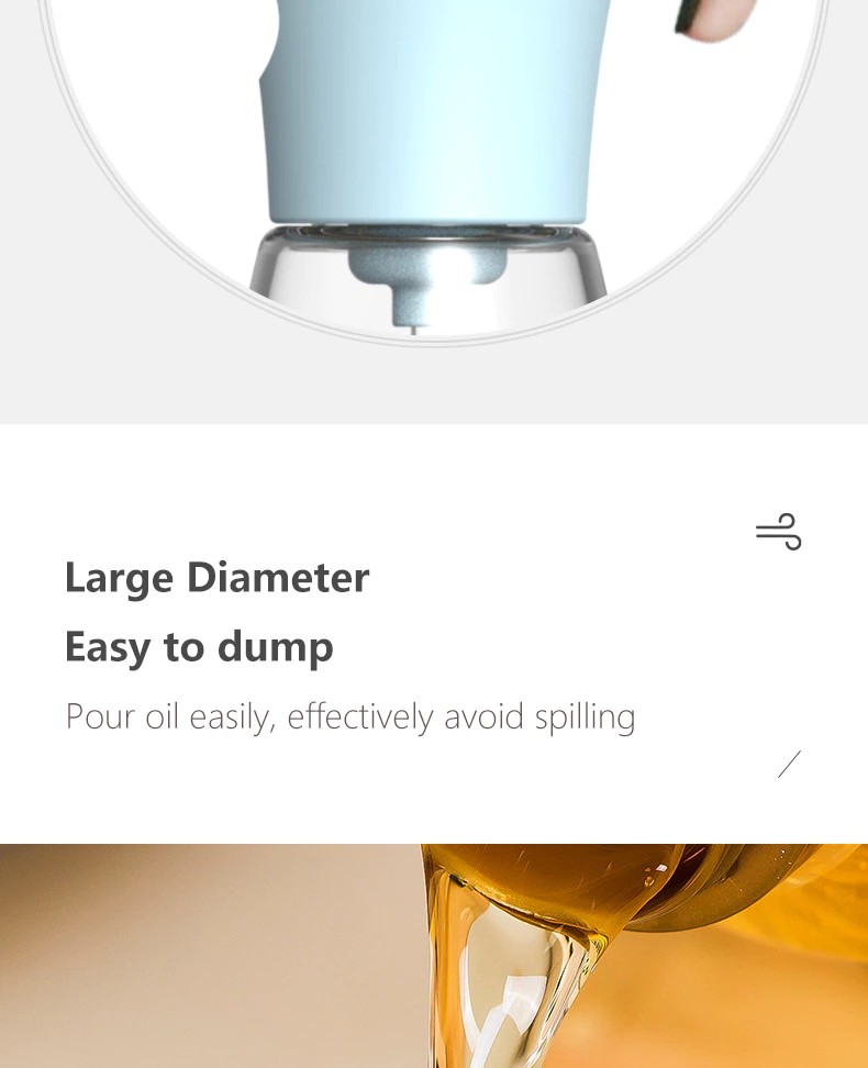 Die spray flasche ist mit einem großen kaliber, die ist bequem für gießen öl, und keine trichter ist benötigt zu vermeiden verschüttet, wenn gießen öl.
