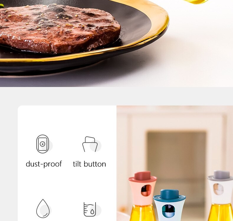 Die gewürz flasche hat gebaut-in düse, ist staub-proof, und push-typ düsen ist bequem und schnell zu spray öl.
