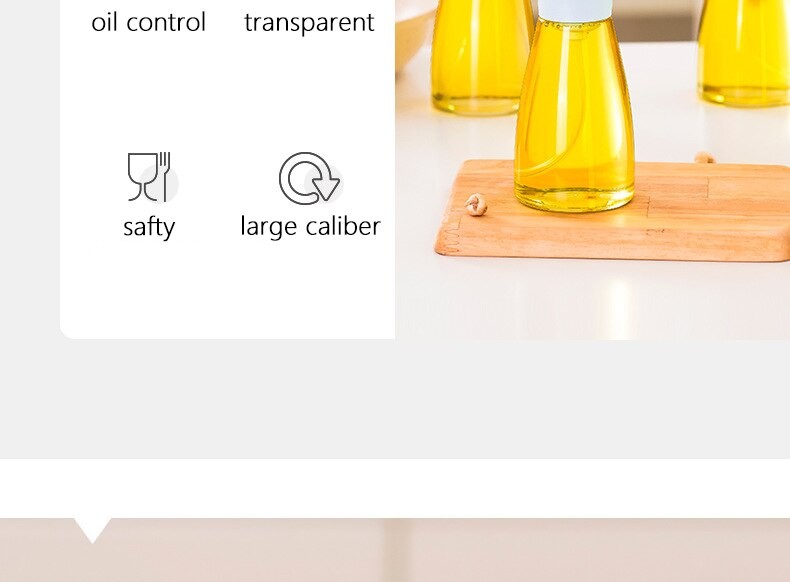 Die push-typ öl sprayer ist aus PP material,, die gesund ist, und hat keine eigenartigen geruch, flexible und unzerbrechlich, und ist sicher für lebensmittel kontaktieren.