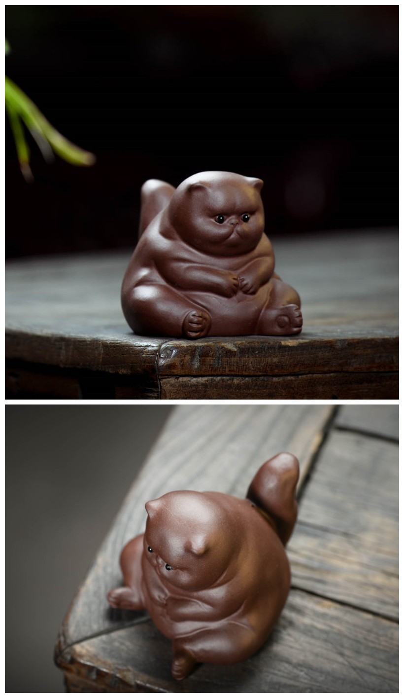 Yixing Boutique Purple Clay Tea Pet Lucky Cat Figurine Ornamenti Da Tavolo Scultura Fatta A Mano Artigianato Set Da Tè Per La Casa Regali Di Decorazione