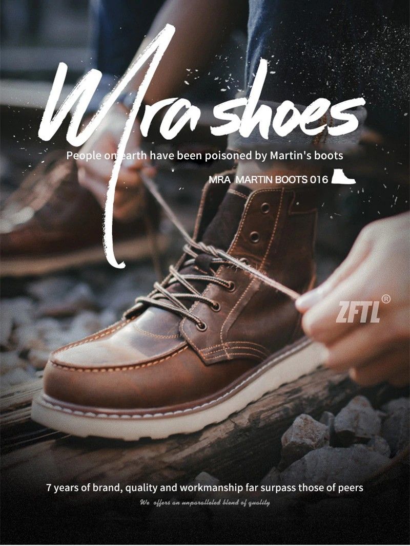 Zftl الرجال مارتينز الأحذية الأمريكية الرجعية الأدوات أحذية عادية مجنون الحصان جلد الرجال الأحذية رجل خمر حذاء كاحل برباط الأحذية