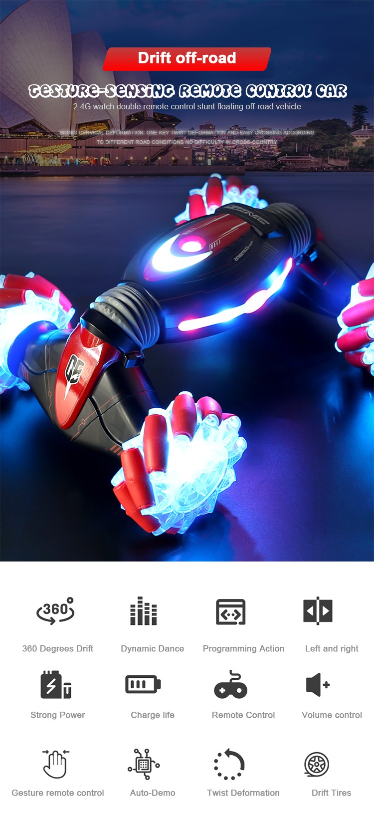 Gesture Sensing Stunt Remote Control Car Children's Light Light Music Twisting Car Deformation Climbing Off-road Vehicle Model