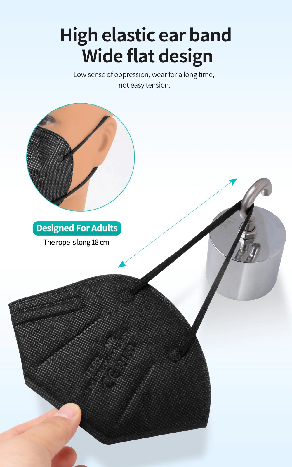 * Texture douce et port confortable des masques: le masque peut isoler les particules plus petites et s'adapter plus étroitement au visage, il n'est pas facile de faire fuir l'air de la périphérie, et l'efficacité de filtration des particules peut atteindre 95% dans des conditions standard.