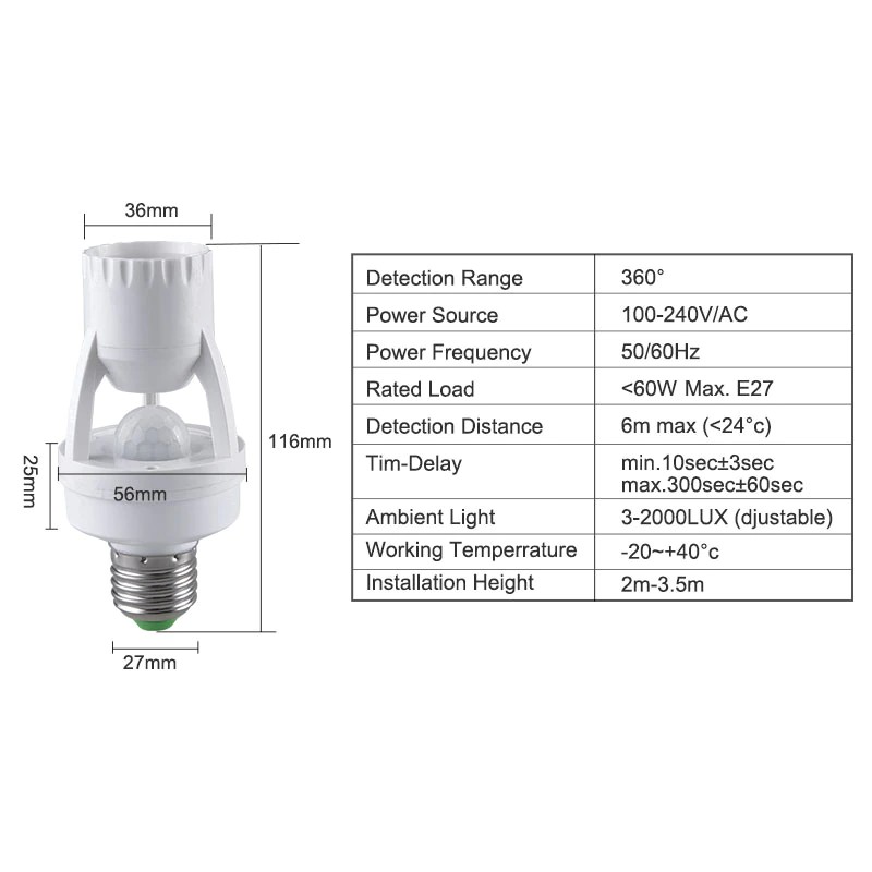 100-240V Socket E27 With Pir Motion Sensor Led E27 Lamp Base Light Bulb Switch
