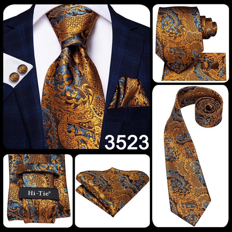 Hi-Tie 100% Zijde Luxe Mens Ties Bloemen Zwarte Goud Banden Paisley Stropdas Pocket Plein Manchetknopen Set Mannen Wedding Party Tie