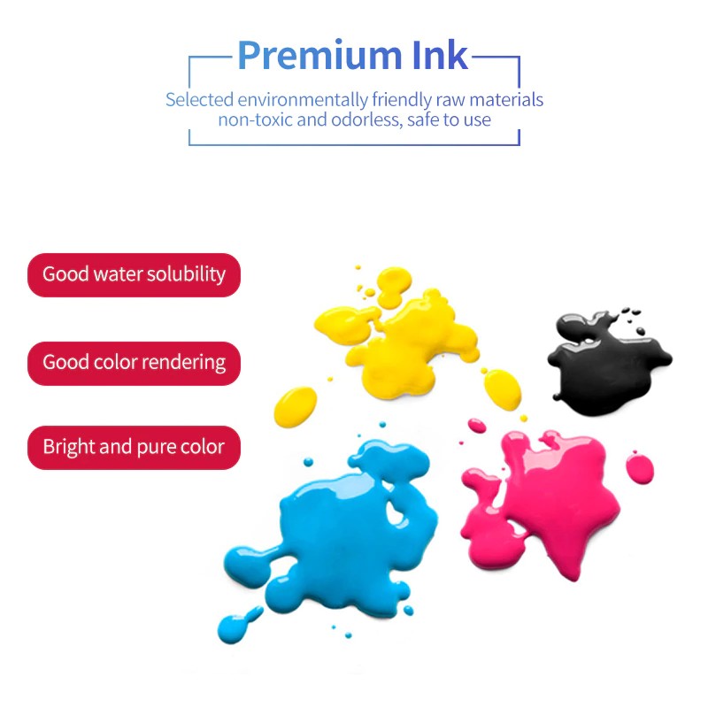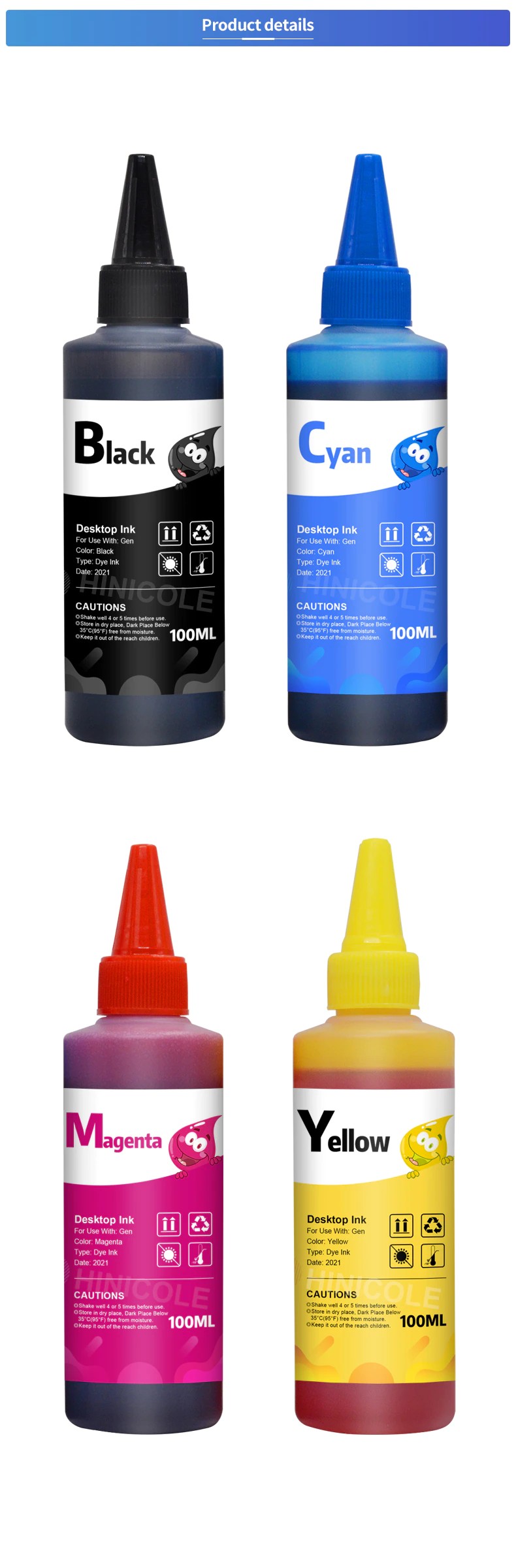 1 Bottle Black + 1 Bottle Cyan+ 1 Bottle Magenta + 1 Bottle Yellow Dye Ink with 100ml/bottle
